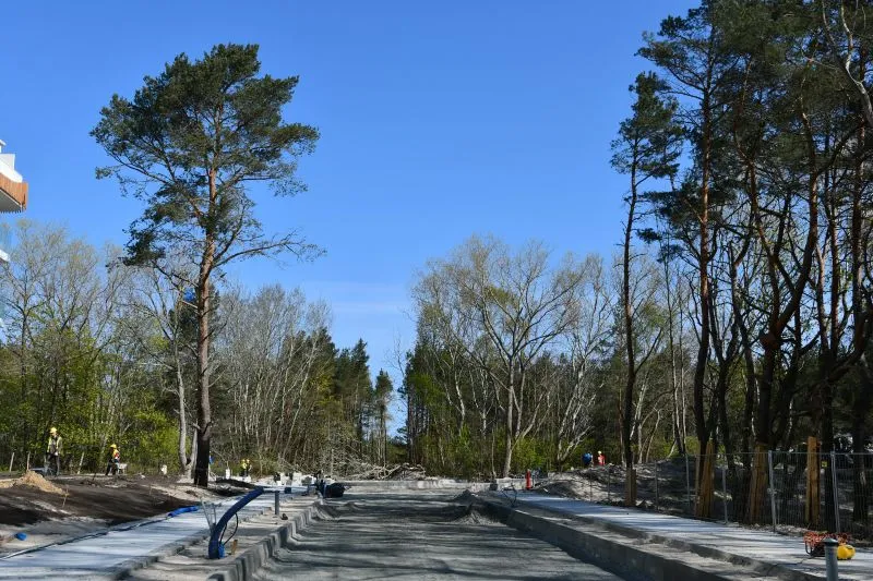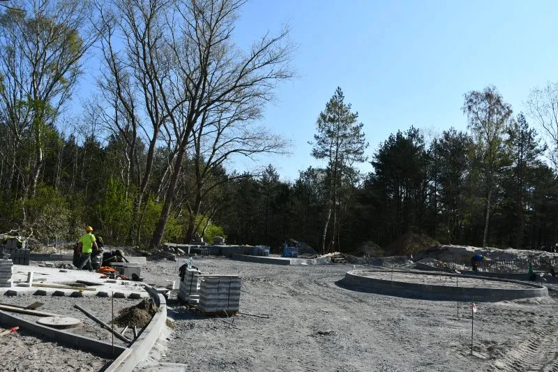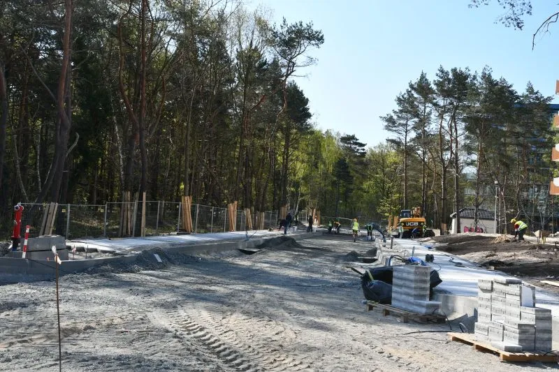 Coraz wyraźniejszych kształtów nabiera budowa ronda i wejścia na plażę przy ulicy Zdrojowej. Inwestycja podzielona jest na dwa etapy: pierwszy odcinek około 120 m od ul. Uzdrowiskowej kończy się rondem, etap drugi zakłada wykonanie nawierzchni żwirowej do pasa technicznego. Nawierzchnia jezdni i chodników nawiązuje materiałem i wzorem do tych już istniejących. Na dzień dzisiejszy od ulicy Uzdrowiskowej do ronda układane są krawężniki betonowe, warstwy podbudowy oraz obustronnie nawierzchnie chodników.