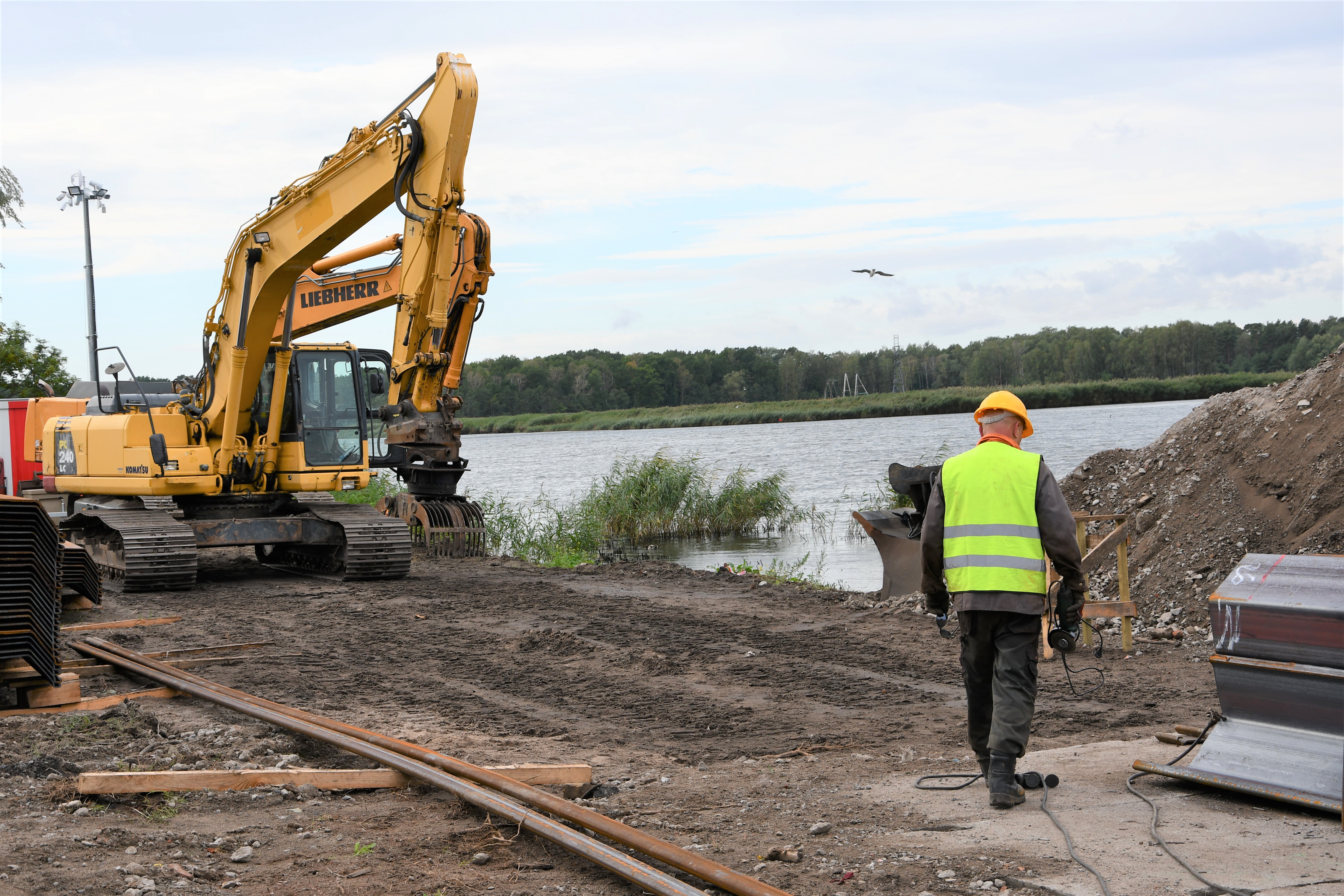 Na budowie nowej bazy dla rybaków zakończono rozbiórkę betonowych placów oraz umocnień brzegowych. Dużo czasu zajęło wykonawcy usunięcie ogromnych ilości śmieci (głównie starych, zużytych opon), które zalegały pod płytami, którymi było wyłożone podłoże.
