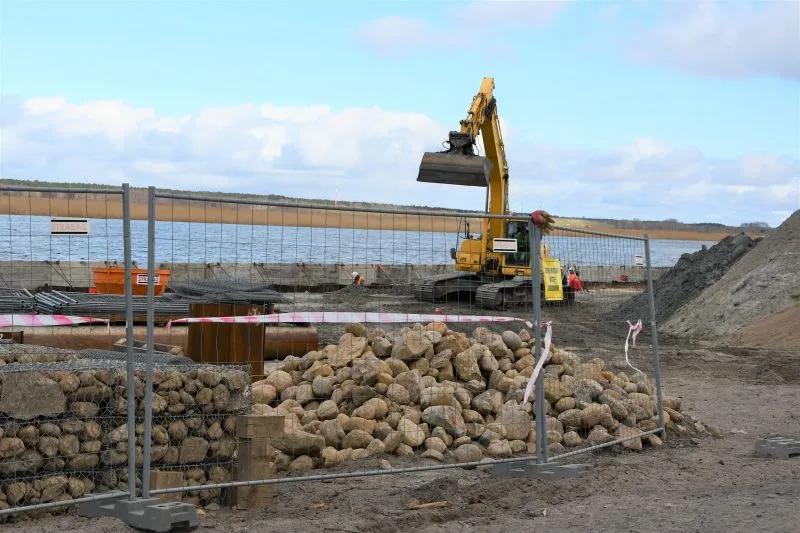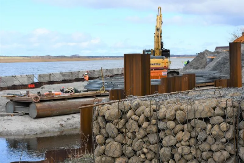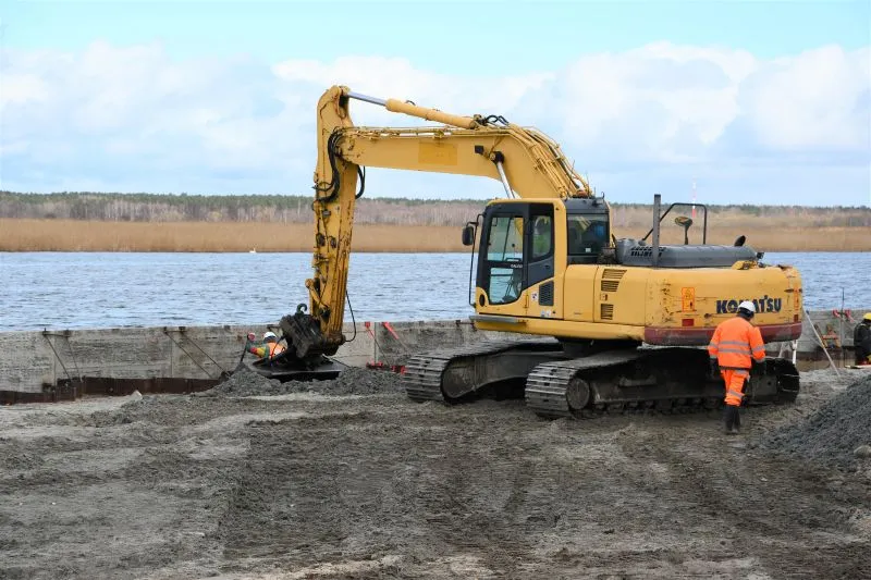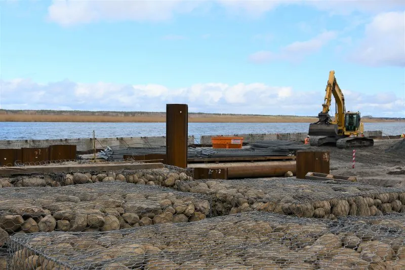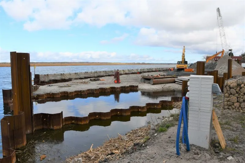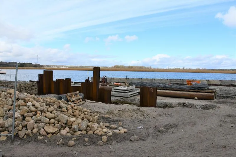 Pomosty będą dostarczone drogą wodną. Na miejscu mają być (w zależności od pogody) jeszcze dziś lub jutro (poniedziałek/ wtorek). Oprócz nich na przystani będzie jeszcze pięć stanowisk rozładunkowych dla kutrów o maksymalnej długości 12,0 m oraz zanurzeniu do 2,5 m. Nowa przystań ma być gotowa w październiku. Pierwotnie w umowie z wykonawcą termin zakończenia budowy wyznaczono na sierpień tego roku. Został przedłużony przede wszystkim z powodu konieczności oczyszczenia terenu z ogromnych ilości śmieci (kilkaset starych opon, sieci rybackich, części samochodowych, a nawet akumulatory), które znaleziono pod rozebraniu starego betonowego placu oraz w wodzie. Wykonawca musiał je wywieźć do neutralizacji.