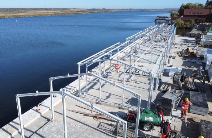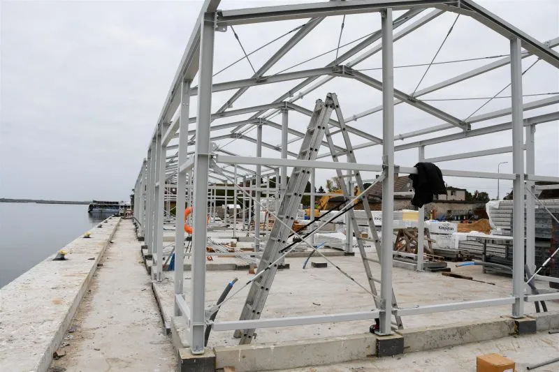 W tej chwili na budowie oprócz wspomnianej wylewki betonu, na nabrzeżu trwa m.in. montaż stalowych konstrukcji magazynów wyładowczych. Oprócz nich będą także magazyny do przechowywania sprzętu. Przy nowym nabrzeżu będzie w sumie 5 stanowisk rozładunkowych dla kutrów o maksymalnej długości 12 metrów oraz zanurzeniu do 2,5 metra. Gotowy jest już także dodatkowy pływający odcinek postojowy, przystosowany do cumowania mniejszych jednostek.