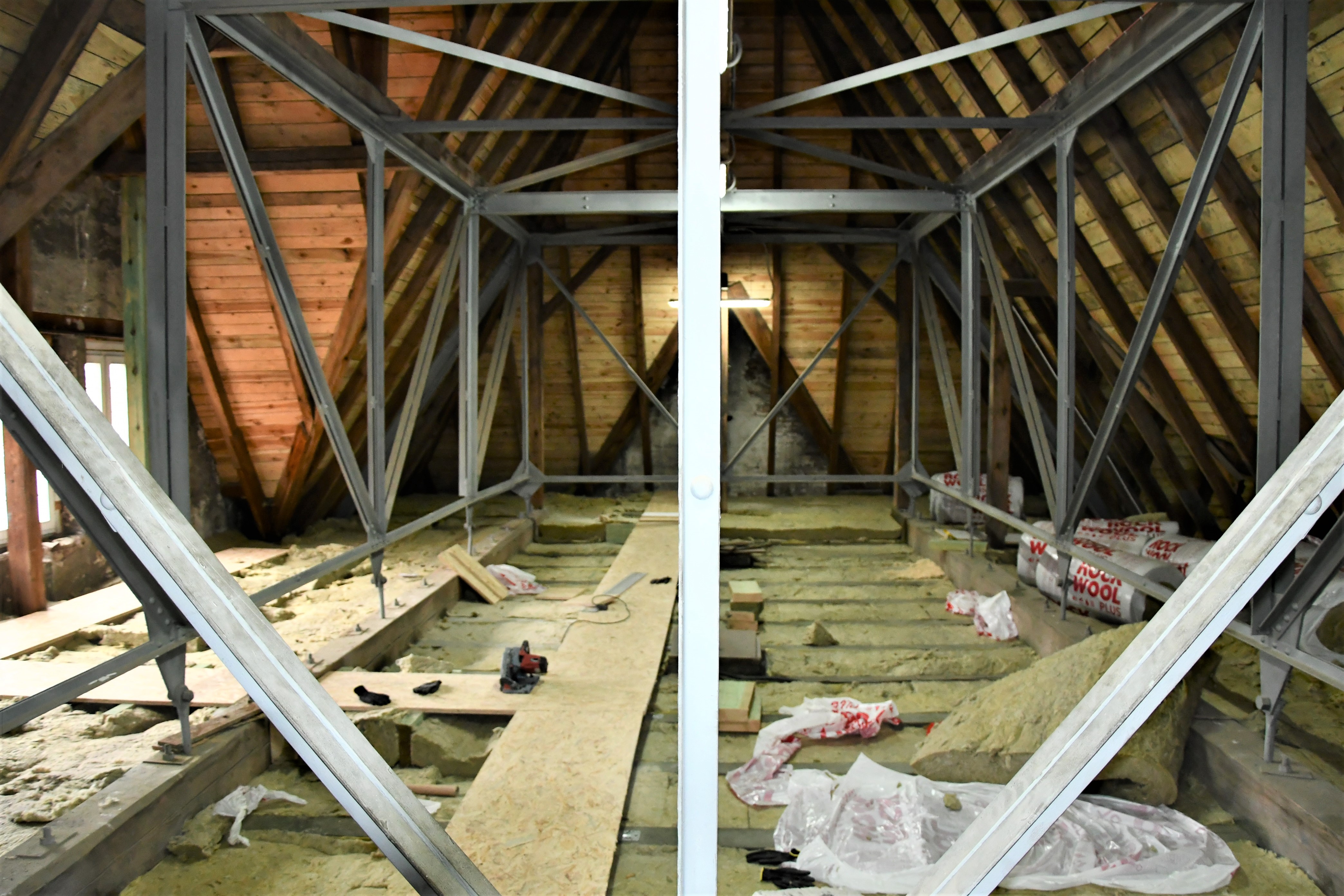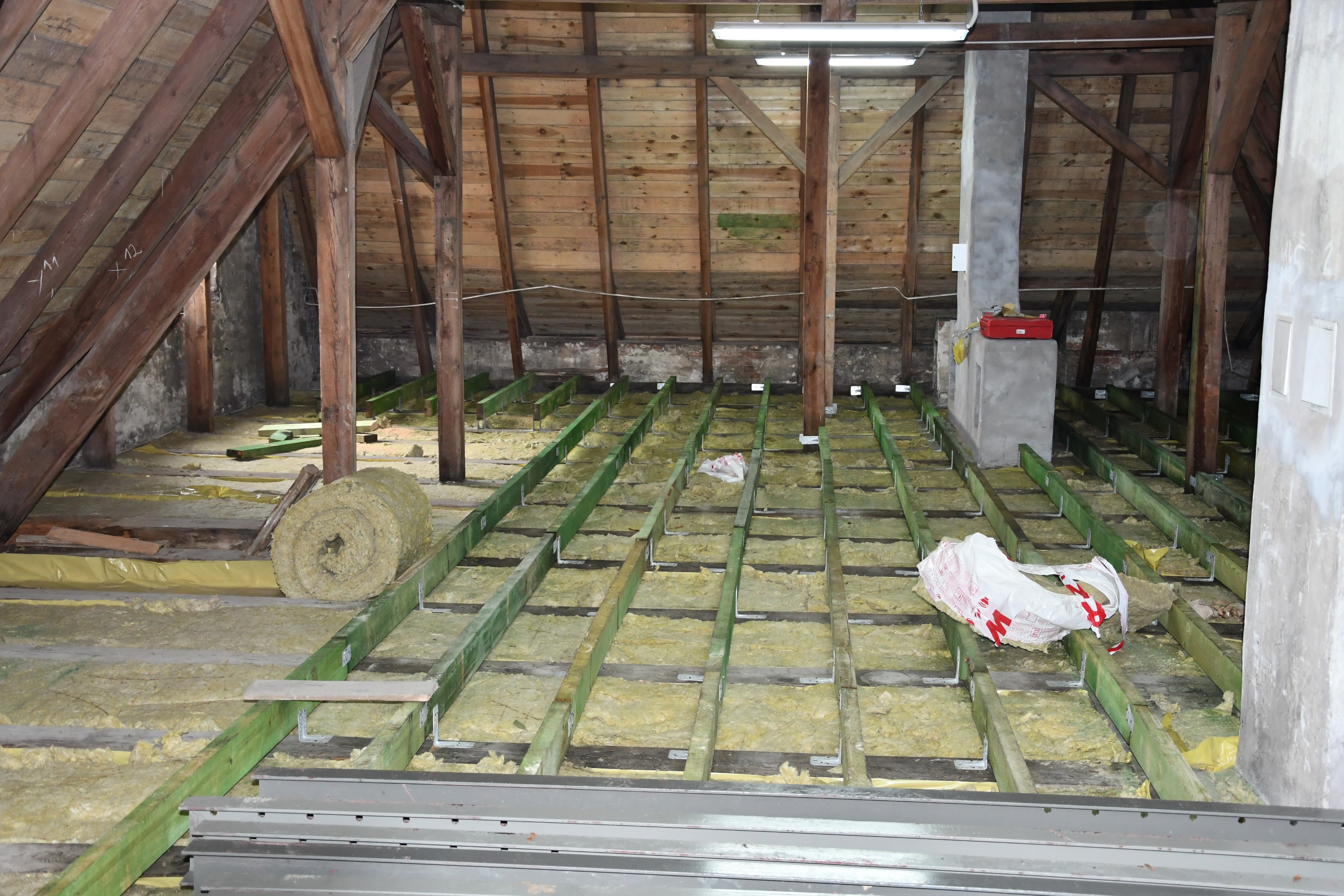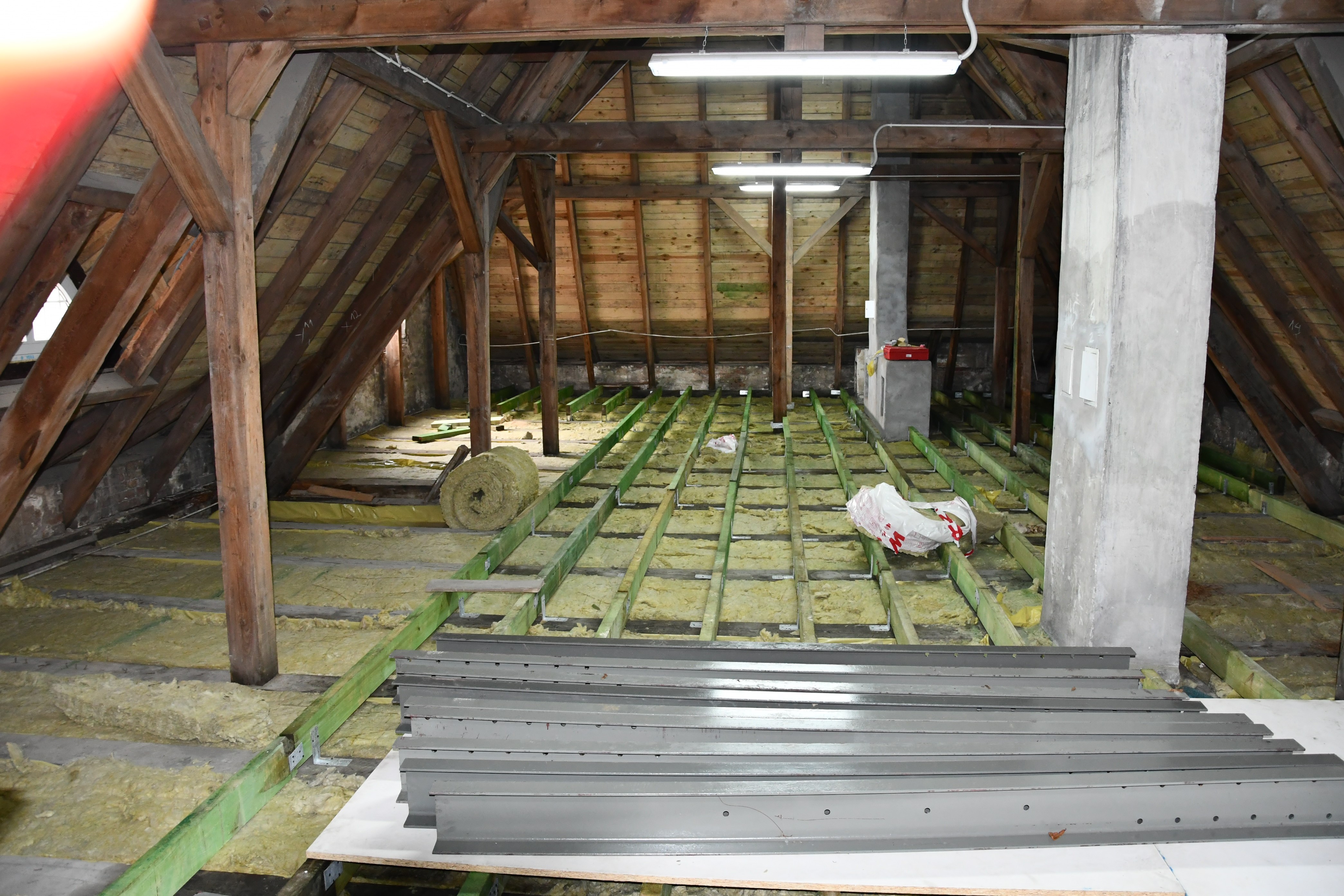 Do końca listopada wykonawca planuje zakończyć wzmacnianie stalowymi ceownikami stropowych belek. Na ukończeniu jest ocieplenie, pokrycie i obróbka blacharska dachu nad salą gimnastyczną i łącznikiem.