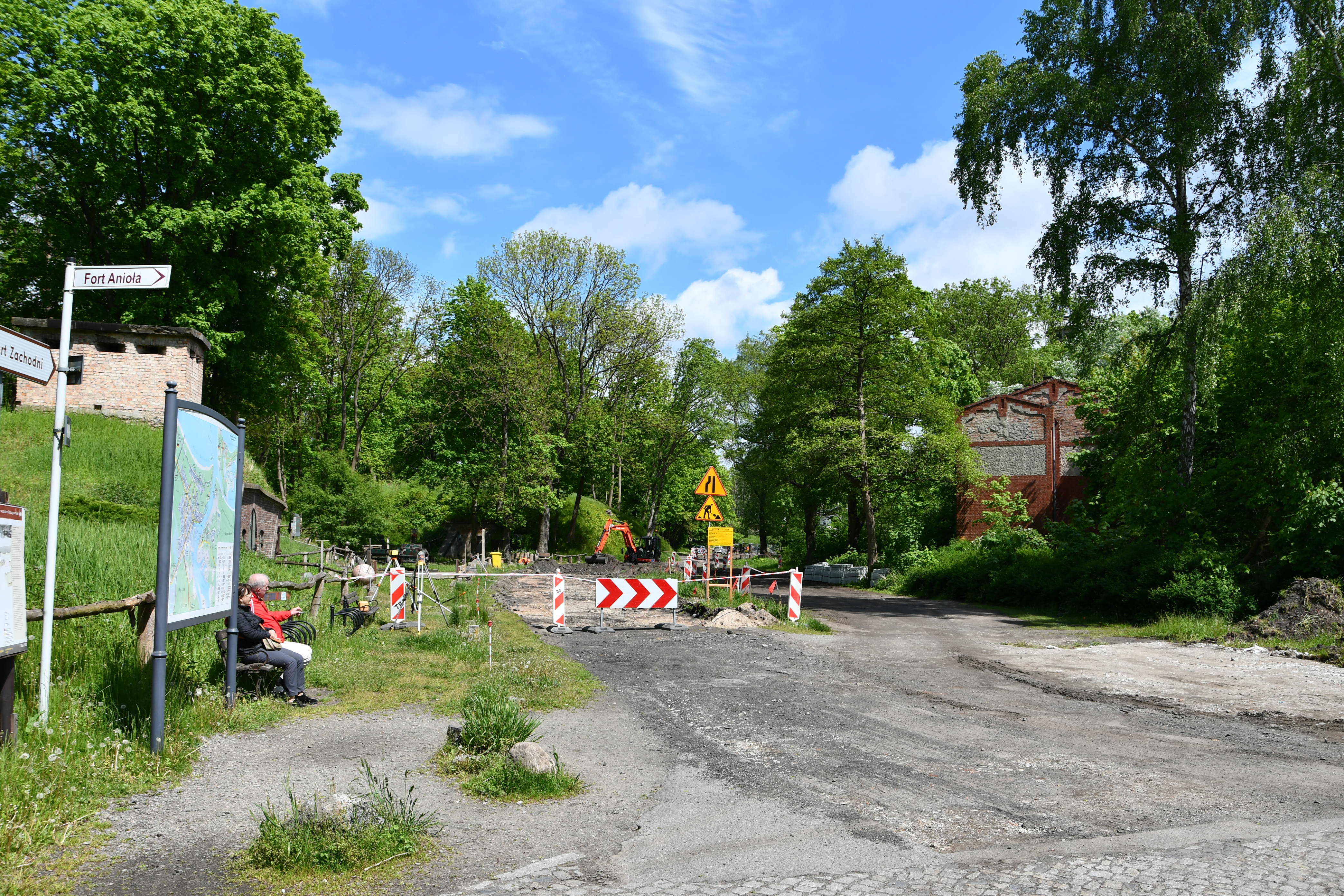 Budowa drogi wzdłuż ulicy Jachtowej podzielona jest na dwie części. Na pierwszej (300 metrów od Fortu Zachodniego i drogi rowerowej "Nad Świną" do bramy parkowej. Patrz foto wyżej) powstanie pieszo- jezdnia, którą bezpiecznie będą mogli poruszać się piesi, rowerzyści oraz zmotoryzowani. Nawierzchnia będzie wykonana z gładkiej kostki kamiennej. Wybudowanych będą 54 miejsca parkingowe. Wykonawcą jest poznańska firma „Projekt i Realizacja”.