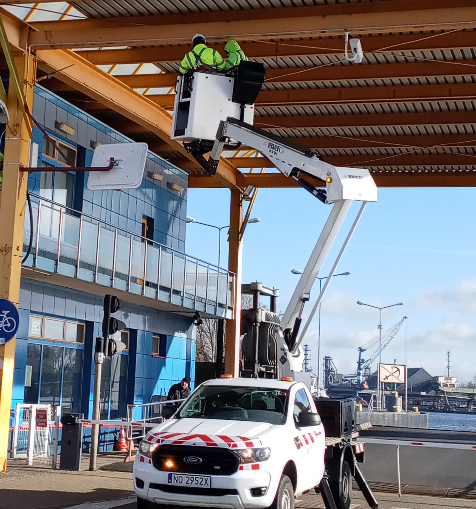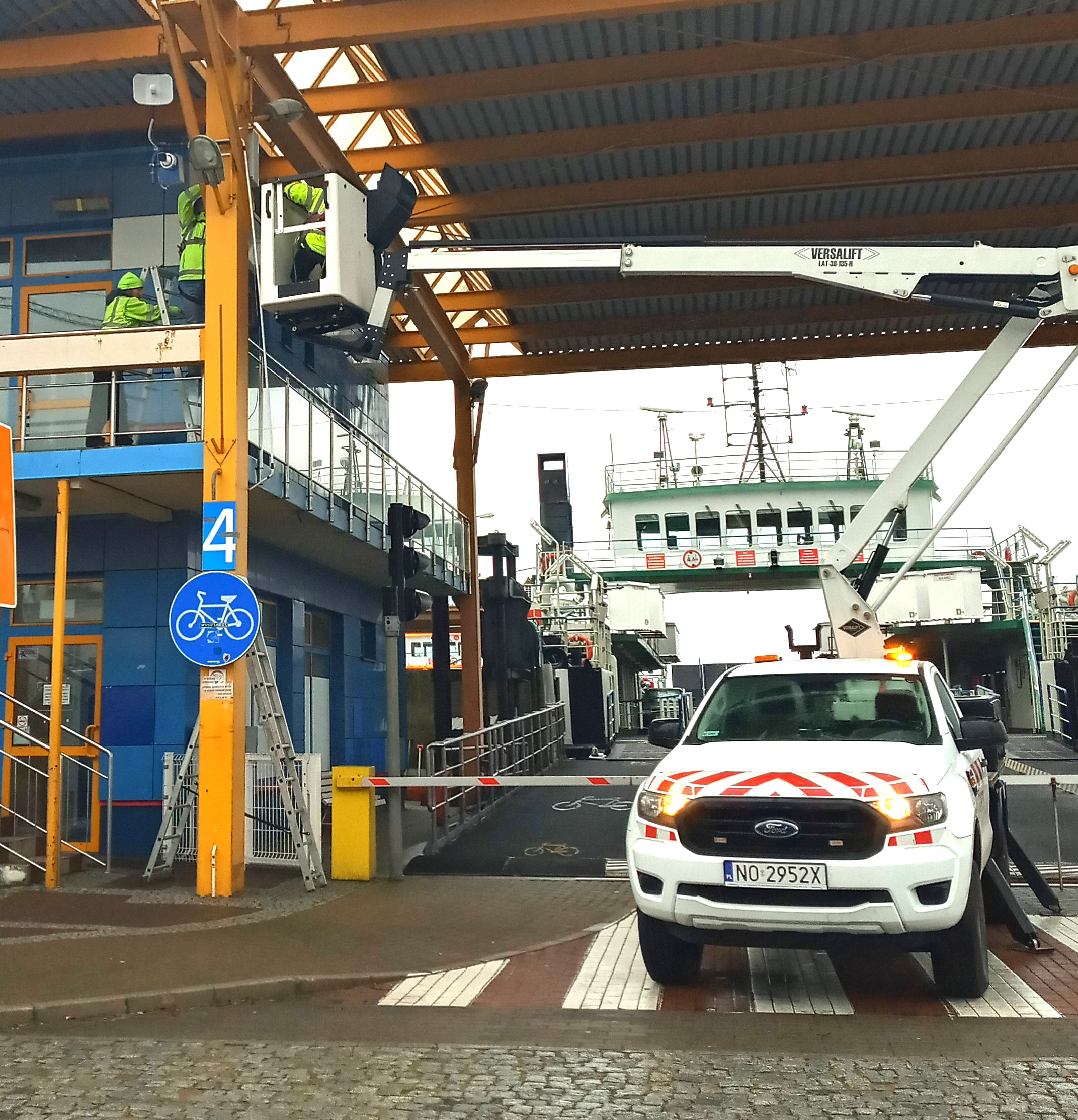 Trwają prace związane z budową Inteligentnego Systemu Zarządzania Ruchem (ITS). Wczoraj montowane były kamery na przeprawie promowej i przyłącza elektroenergetyczne do tablic zmiennej treści, które staną w różnych częściach miasta.