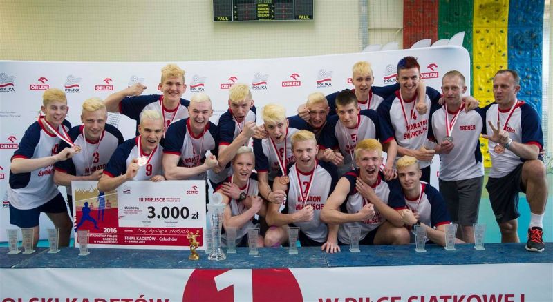 W dniach 4-8 maja odbywały się w Człuchowie Finały Mistrzostw Polski Kadetów (Kategoria do 17 lat) w piłce siatkowej, w których brali udział siatkarze Maraton-LNG Świnoujście. Jak obiecali tak zrobili, a mianowicie po niesamowitym Turnieju świnoujscy siatkarze wywalczyli 3 miejsce w Polsce i mogli się cieszyć ze zdobycia brązowych medali. Oczywiście obiecanki to jedno, a sposób w jaki wywalczyli te, aż brązowe medale wprawił wielu obserwatorów, trenerów i kibiców w osłupienie.