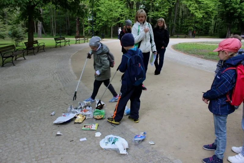 W rajdzie udział wzięło ponad 200 uczniów z 16 klas oraz spora grupa nauczycieli i wspierających rodziców. Start na trasę rajdu następował przy bramie do zrewitalizowanej części parku zdrojowego, obok ronda Róży Wiatrów. Dzieciaki i ich nauczyciele, po otrzymaniu mapek określali miejsce znajdowania się, zapoznawali się z parkowym regulaminem, śpiewali jedną zwrotkę piosenki – najbardziej popularna była piosenka o mamie – po czym ruszali dalej według mapki. Harcerze tym razem na trasie rajdu przygotowali dzielnym uczniom cztery punkty kontrolne, na których należało: ułożyć wielkie drewniane puzzle, umieć posortować odpadki, wykazać się celnością w strzelaniu z pistoletu pneumatycznego do tarczy oraz w rzucie do celu a wreszcie pokonać tor sprawnościowy. Ostatnią atrakcją było oczywiście pieczenie kiełbasek na ognisku. Zabawa była świetna a i emocji na torze sprawnościowym nie zabrakło. Niestety w tym roku pogoda nas nie rozpieszczała, choć na szczęście udało się uniknąć deszczu. Miło nam było oglądać radosne buzie dzieciaków a słowa podziękowania nauczycieli były potwierdzeniem udanej zabawy. Do zobaczenia za rok.