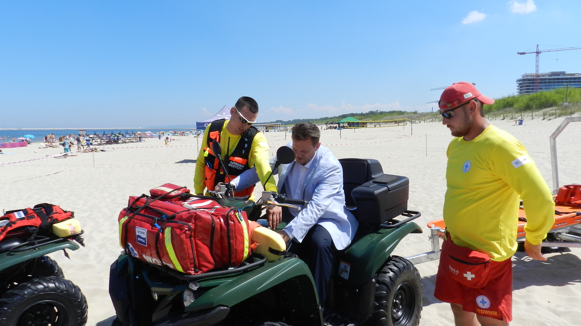 To łódź motorowodna RIB, skuter wodny Yamaha z platformą ratowniczą, quad Yamaha z przyczepą ratowniczą. Dzięki zmianie łączności z analogowej na cyfrową poprawi się również komunikacja pomiędzy ratownikami i innymi służbami ratowniczymi. Administrator kąpieliska Ośrodek Sportu i Rekreacji „Wyspiarz” zainwestował również w doposażenie sprzętu sprzątającego plaże. Do już działających ciągników i kombajny czyszczącego plażę dokupiono dodatkowe urządzenia do odpiaszczania infrastruktury znajdującej się na plaży( wejść ,promenady)oraz specjalne podnośniki, które usprawnią sprzątania plaży.
