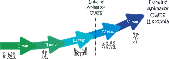 Udział w etapach I, II i III jest obligatoryjny, aby otrzymać tytuł Lokalnego Animatora OWES, natomiast etapy IV i V są fakultatywne, jednakże serdecznie zapraszamy do skorzystania z pełniej ścieżki ALA.