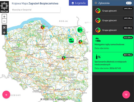 Z narzędzia należy korzystać w sposób rozsądny. Każde naniesione na mapę zagrożenie wywoła odpowiednią reakcję Policji. Z jednego komputera można zgłosić jedno zagrożenie na dobę.