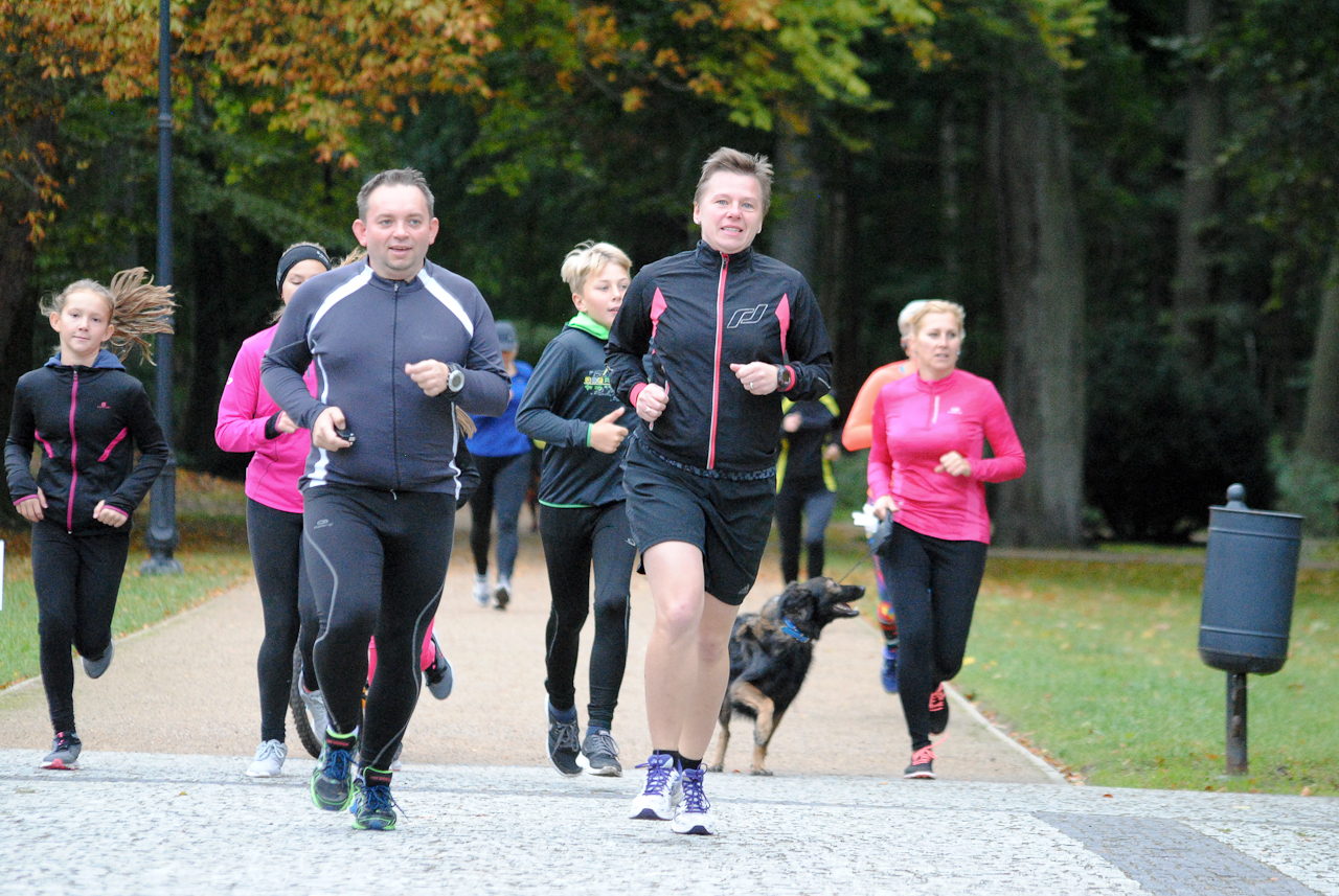 „…że trzynastka jest szczęśliwa nie potrzeba przekonywać…” Pomimo nocnych opadów i silnego wiatru na czas parkrunowego biegu wiatr przegonił chmury i poprzez korony drzew przedzierały się nieśmiało promienie jesiennego słońca. Na starcie stawiło się 54 zawodników. Biegacze ruszyli parkowymi alejkami, aby przegonić jesienne smutki i cieszyć się bieganiem.