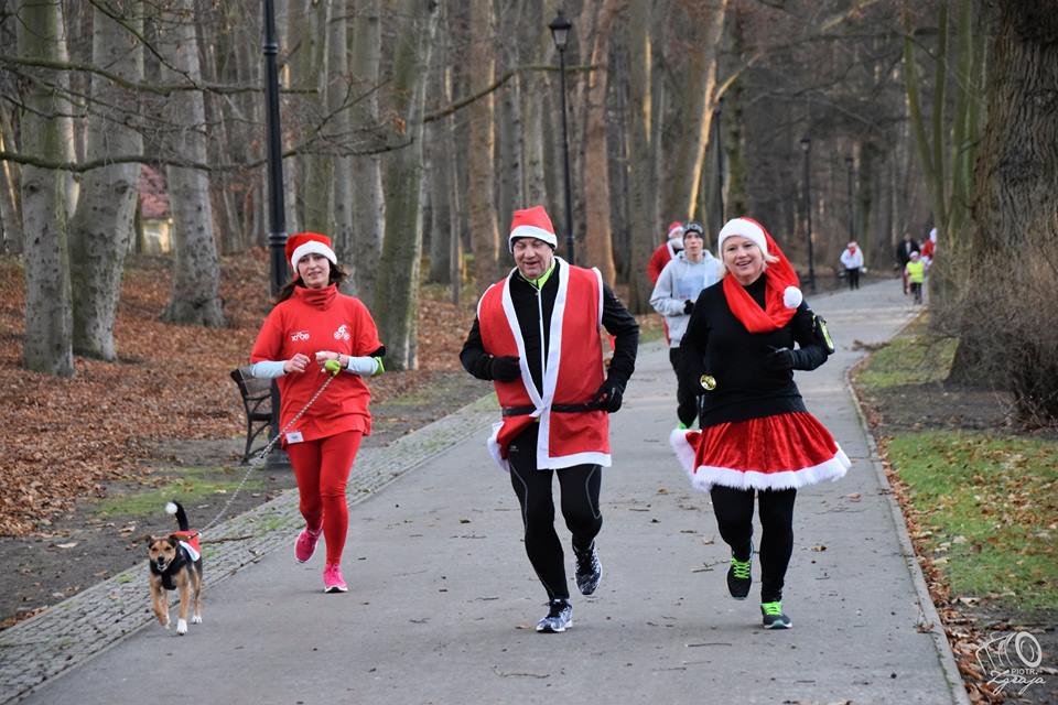 Sobotni piękny, słoneczny poranek (03.12.2016) już za nami. Parkowe alejki zapełniły się Mikołajami i Mikołajkami. Sportowy duch wstąpił biegaczy i 72 osoby stanęły na starcie 21. biegu, wspomagane przez 5 psich reniferów. Gościliśmy „parkrunowego turystę” Marka Chołotę i „parkrunowego weterana” z Leszna Tomasza Kozłowskiego, który ma już za sobą ponad 80 biegów. W Biegu Mikołajkowym dla najmłodszych uczestniczyło około 30 przedszkolaków min z Przedszkola nr 3 „Pod Żalami” - pod wodzą jakże pięknej Pani Mikołajkowej Oli Keplin.
