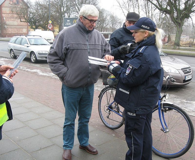 Policjanci ze Świnoujścia także włączyli się do tej szczytnej akcji. Wczoraj w różnych częściach miasta stróże prawa rozdawali opaski przechodniom oraz rowerzystom, przypominając, że te niewielkie gadżety mają wielkie znaczenie w dbaniu o bezpieczeństwo niechronionych uczestników ruchu drogowego. Mundurowi przekonywali, że widoczność jest  ważnym elementem składającym się na bezpieczeństwo. Pieszy, który posiada element odblaskowy widoczny jest dla kierowców z odległości nawet 150 metrów. Jeśli go nie ma, to pieszy jest widoczny dla kierowcy z odległości około 30 metrów. Wtedy nie ma on praktycznie możliwości wykonania jakiegokolwiek manewru i dochodzi do potrącenia.