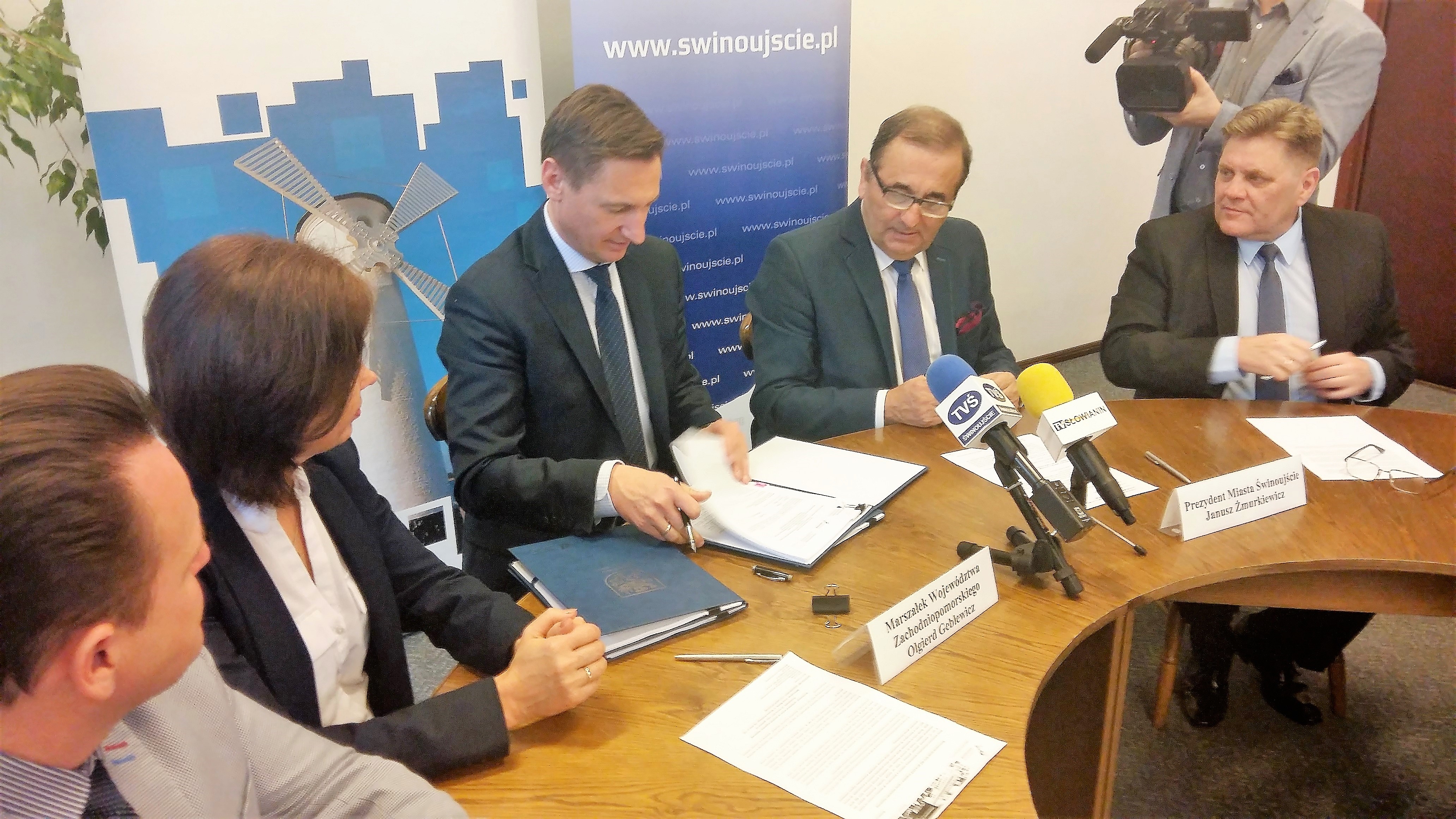 Marszałek Województwa Zachodniopomorskiego Olgierd Geblewicz oraz Prezydent Miasta Świnoujście Janusz Żmurkiewicz podpisali dziś umowę na dofinansowanie ze środków unijnych dwóch kolejnych inwestycji w naszym mieście. Pierwsza to przystań jachtowa w Przytorze. Druga to przystań kajakowa na wyspie Karsibór. Obie będą gotowe do końca 2018 roku. Obecnie byli również zastępcy prezydenta miasta Barbara Michalska i Paweł Sujka oraz pochodzący z Karsiboru wiceprzewodniczący Rady Miasta Zdzisław Merchelski i przewodniczący Rady Osiedla Karsibór Przemysław Witkowski.