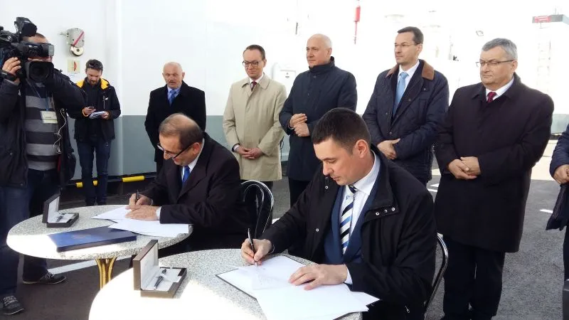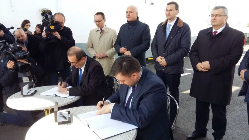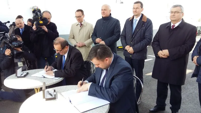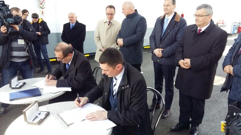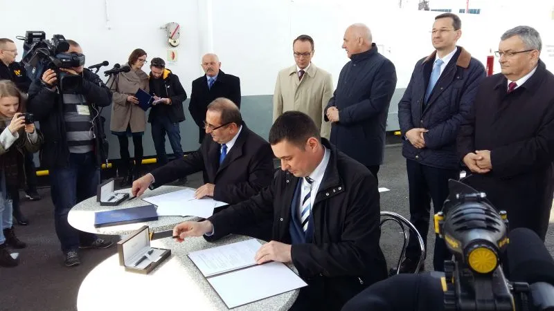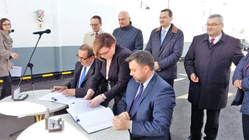 Dziś w południe na promie „Karsibór II” Prezydent Miasta Świnoujście Janusz Żmurkiewicz podpisał z dyrektorem Centralnego Urzędu Projektów Transportowych Przemysławem Gorgolem umowę o dofinansowanie w 85 procentach budowy stałego połączenia pomiędzy wyspami Uznam i Wolin oraz drugą z zastępcą dyrektora Generalnej Dyrekcji Dróg Krajowych i Autostrad Łukaszem Lendnerem na inwestorstwo zastępcze przy realizacji inwestycji.
