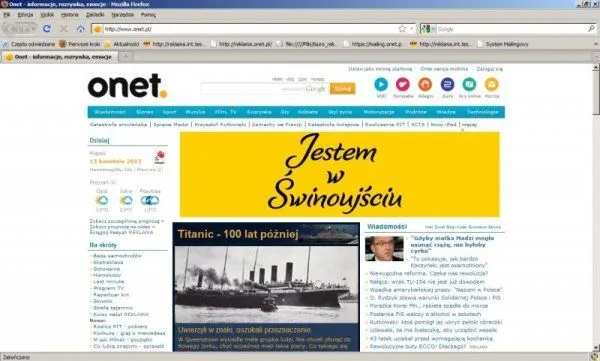 Także dziś na stronie głównej największego ogólnopolskiego serwisu informacyjnego Onet.pl (targetowanie wg ww. miast) pojawił się doublebillboard z reklamą Świnoujścia. Ponadto w serwisie Podróże i Wiadomości znajduje się moduł sponsoringowy w layoucie kampanii (górna belka rozwijana i dolna belka). Oba elementy przekierowują zainteresowanych na stronę internetową Miasta.