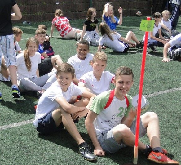 Tuż przed południem rozpoczęły się zmagania klas 4-6. Klasy czwarte zmierzyły się w miniturnieju piłki nożnej. Najlepszą drużyną okazała się klasa 4C. W tym samym czasie klasy piąte i szóste stanęły do wyścigu. Podobnie jak klasy drugie i trzecie musiały szybo biegać, prowadzić piłkę, przenieść kubek z wodą tak, aby jak najmniej wylać czy trafić kulką w obręcz. Najwięcej zabawy jednak przyniosły wyścigi mumii. Drużyny wybierały jednego z zawodników, którego owijały… papierem toaletowym, a papierowe mumie musiały jak najszybciej pokonać trasę wyścigu. Po rozegraniu wszystkich konkurencji najlepsza okazała się klasa 6D. Kolejne miejsca podium należały do klasy 5A i 6B.
