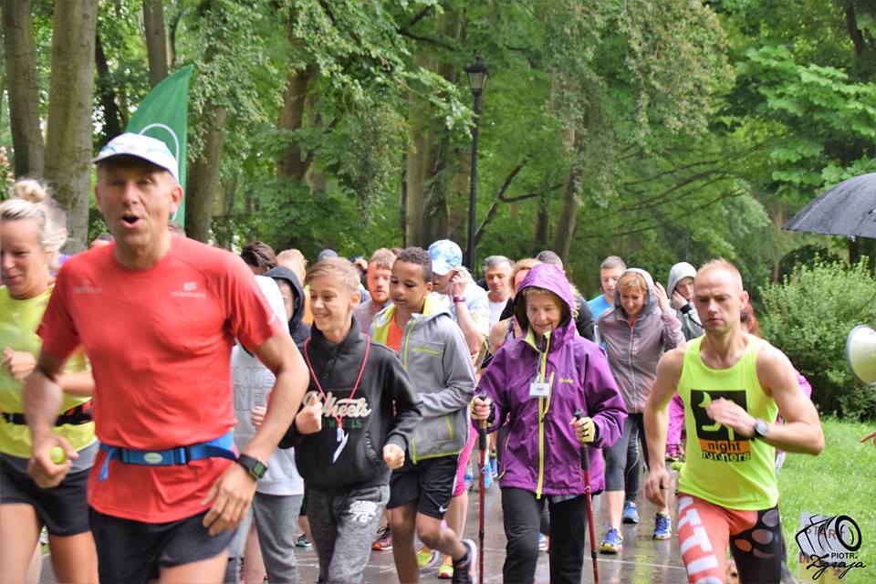 Deszczowa pogoda nie przeszkodziła w aktywnym początku soboty, po rozgrzewce prowadzonej tym razem przez Anię Sikorską, odprawie na linii mety, ponad pięćdziesięciu zawodników pomknęło 5 km trasą alejkami Parku Zdrojowego. Biegaczy prowadził rower bezpieczeństwa, tym razem pod przewodnictwem Adama Krawczuk. Rekordy trasy osiągnęło sześciu biegaczy.