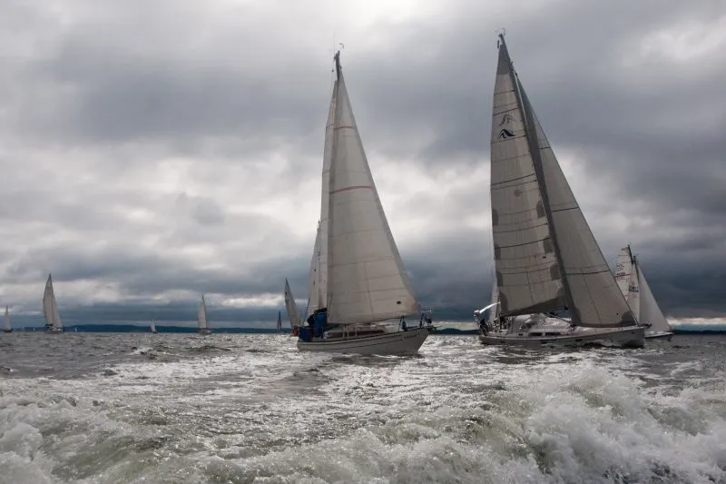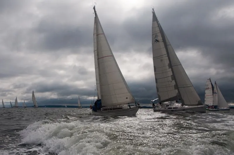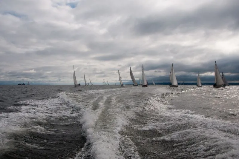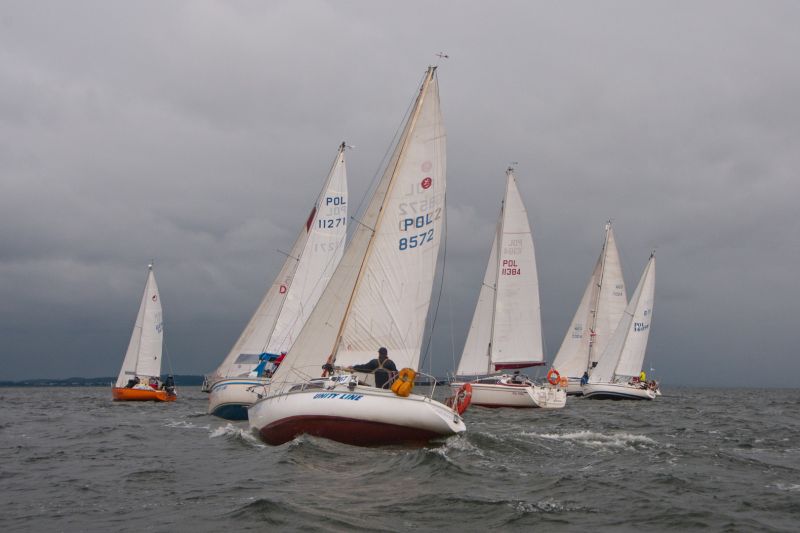 Jachty zostały podzielone na grupy: z pomiarem ORC, z pomiarem KWR, trzy grupy bez pomiarów Open oraz oldtimery i żeglarze samotni. Taki podział to również tradycja tych regat. Tak jak w tytule, często padał deszcz i mocno wiało z zachodu. Przeważały wiatry od 4 do 6 stopni w skali Beauforta. Jak mówi stare powiedzenie żeglarskie – z silnym wiatrem żeglarz da radę a z flautą nie popłynie. Warunki były bardzo dynamiczne. Wiele żagli i innych elementów osprzętu uległo uszkodzeniom, kilka jachtów musiało zawrócić podczas drugiego wyścigu do Kołobrzegu.