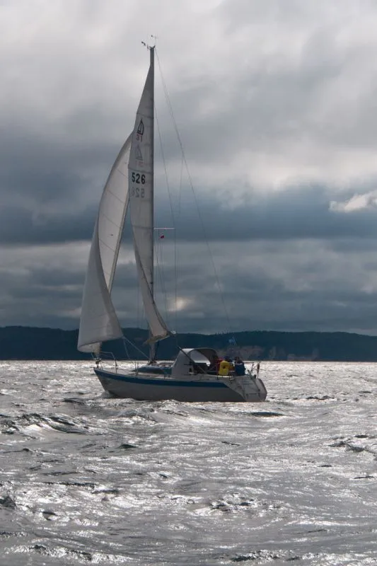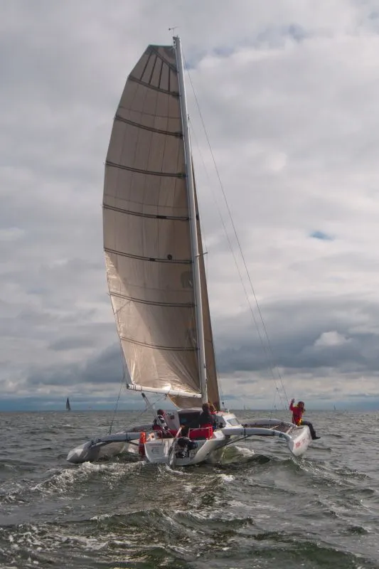 Z wiatrem, nawet silnym płynie się po prostu szybko, natomiast pod wiatr, a tak było w wyścigu Kołobrzeg – Dziwnów mamy do czynienia z kursem na wiatr i pod falę. Słuszna decyzja zawrócenia podjęta przez kapitanów „Nadira” i „Borne on The Wind”, to oszczędzanie naszego najstarszego jachtu, oraz oczywista wybitnie nie sprzyjająca pogada dla trimarana.