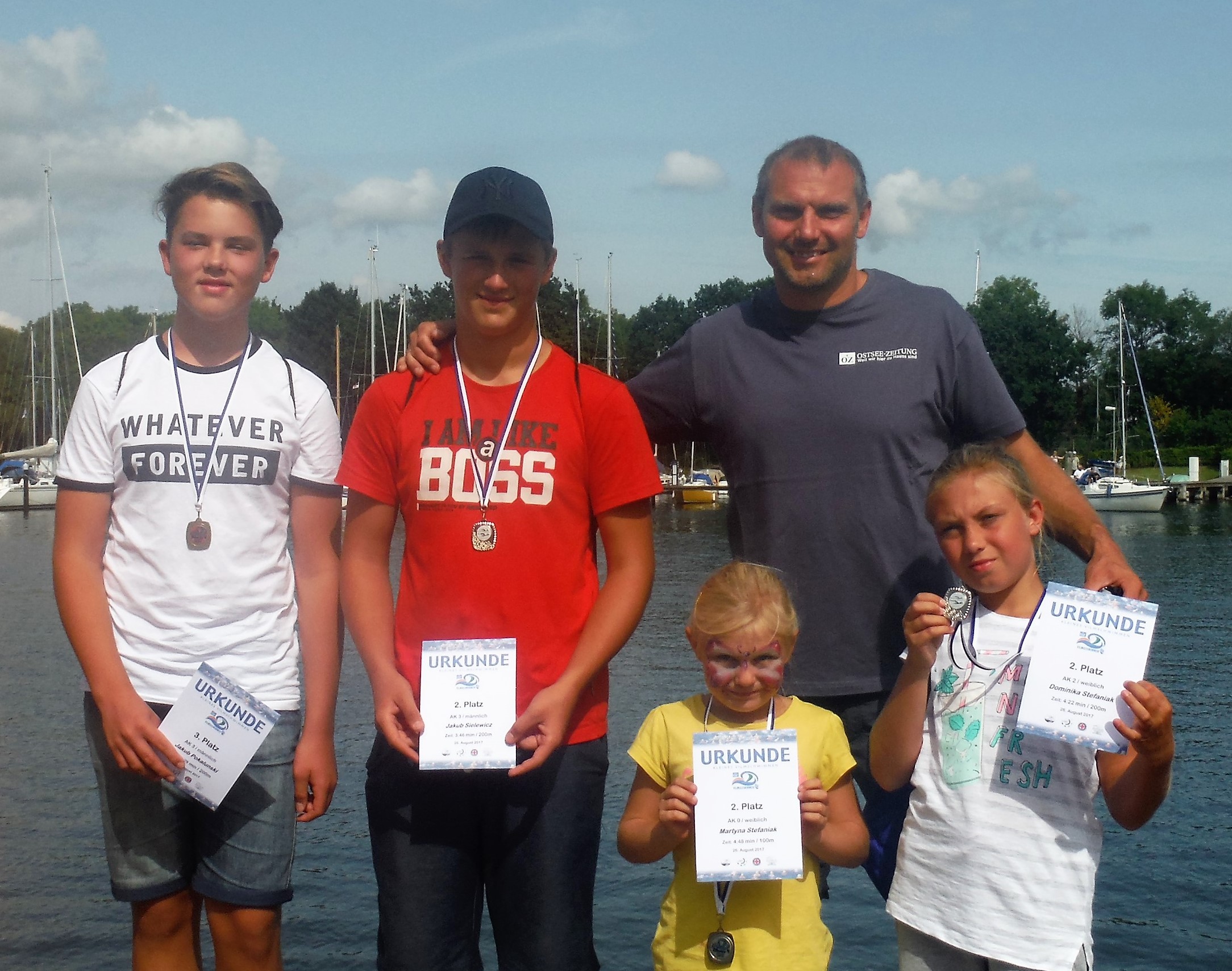 Na drugim stopniu podium zdobywając srebrne medale stanęli: najmłodsza uczestniczka Martyna Stefaniak w kategorii AK 0 rocznik 2010 i młodsi na 100 m , Dominika Stefaniak w kategorii AK 2 2006-2007 na 200 m, Jakub Sielewicz w kategorii AK 3 2004-2005 na 200 m. Na trzecim stopniu podium stanął Jakub Pocałuński w kategorii AK 3 2004-2005 na 200 m zdobywając medal brązowy.