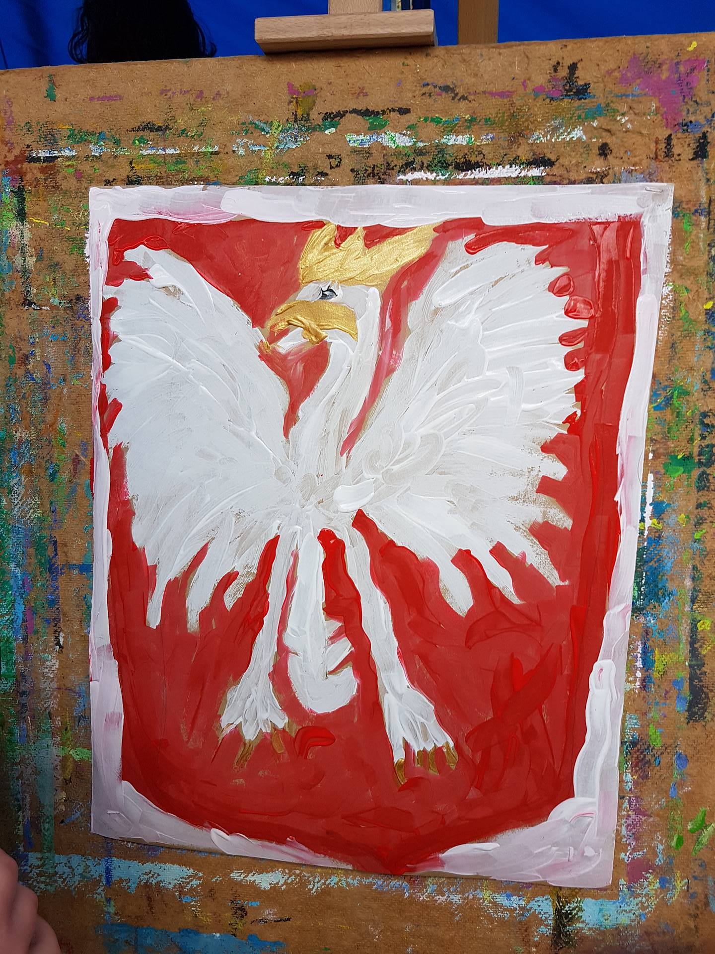 Z pięknym pomysłem angażującym dzieci i ich rodziców wystąpił Ośrodek Działań Teatralnych przy MDK pod niezawodnym kierownictwem Anety Kruk – wspólnym plastycznym wysiłkiem powstało godło Rzeczypospolitej.