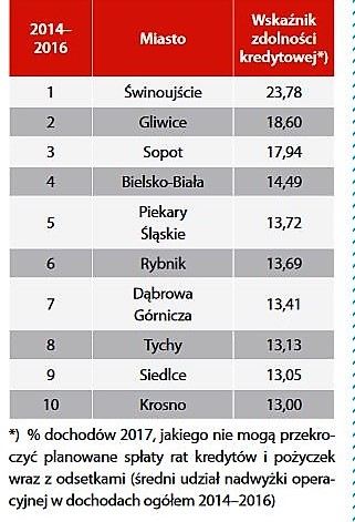 Wskaźnik zdolności kredytowej świnoujskiego samorządu wynosi aż 23,78 procent. Mówiąc inaczej, jest to procent dochodów, jaki możemy przeznaczyć na spłatę ewentualnych rat kredytów i pożyczek wraz odsetkami. Ten ranking to dowód na to, że nasze świnoujskie finanse, budżet miasta mają się naprawdę dobrze.
