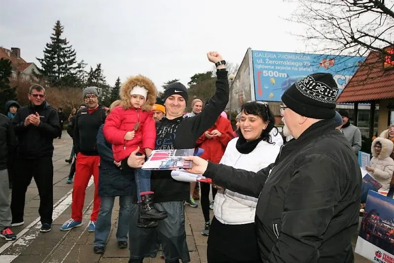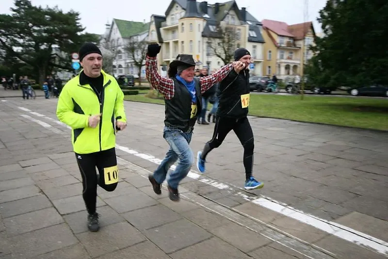 Obok Świnoujścian byli biegacze ze Szczecina , Polic , Warszawy , Tychów i kilku innych miast Polski , biegacze z Hamburga , Hanoweru , Berlina , Wismaru i kilku innych miast niemieckich oraz Danii ( dorosłych , młodzieży i dzieci ) . Przebiegli oni nieco ponad 4km plażą spod pływalni do wiatraka i z powrotem . Najszybciej trasę tę pokonał Robert Derda , przed Mikołajem Antkowiakiem i Mirosławem Zygmuntem . Wśród pań zwyciężyła Heike Grunow , a za nią Marzena Barra i Joanna Stanny . Oto pełne zestawienie wyników :