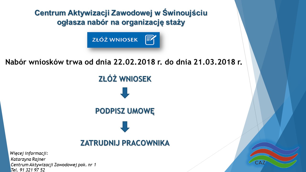 Centrum Aktywizacji Zawodowej w Świnoujściu ogłasza nabór na organizację staży. Zobacz, jakie jeszcze formy wsparcia finansowego możesz zyskać dzięki CAZ.