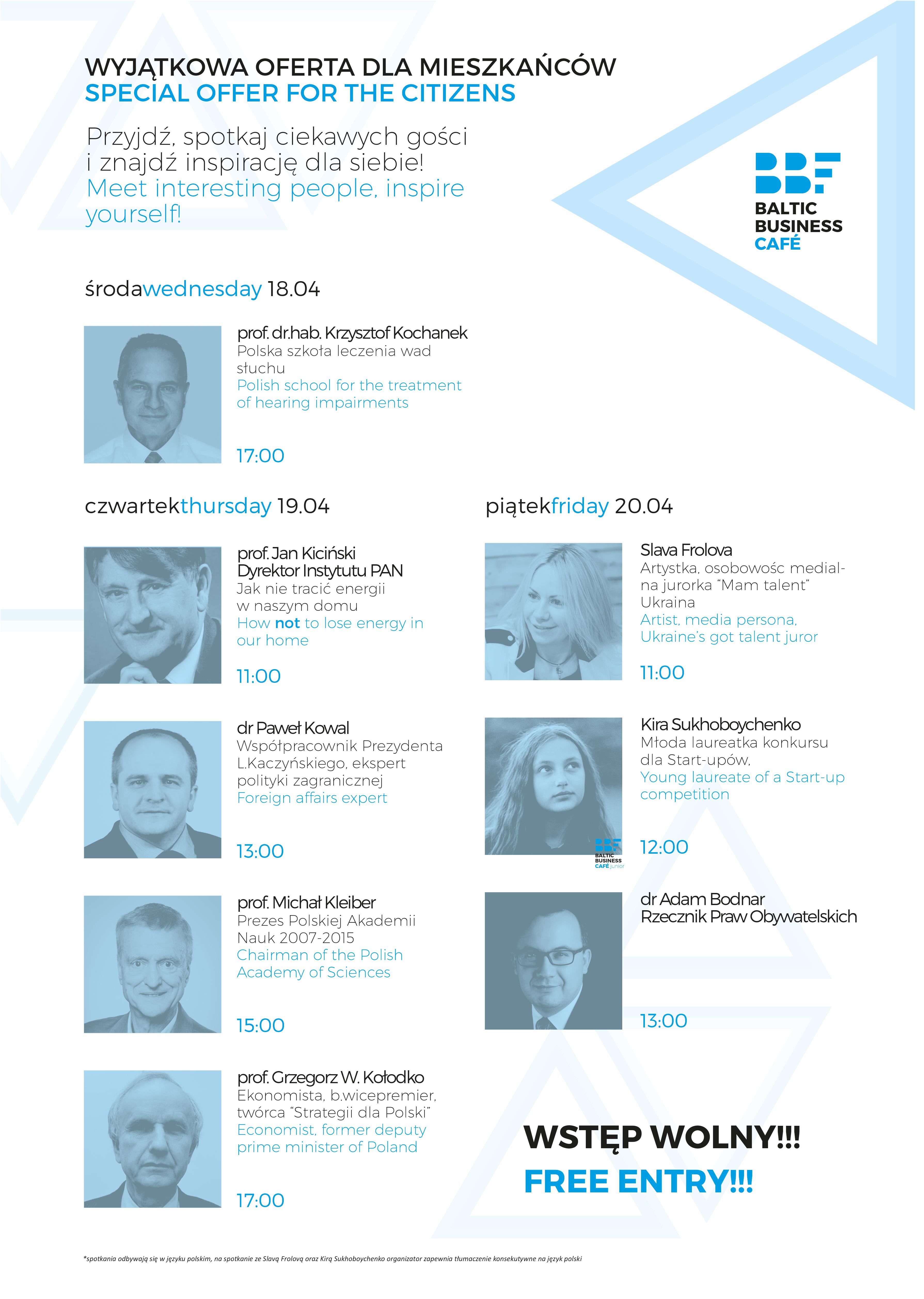 Profesor dr hab. Krzysztof Kochanek, dr Paweł Kowal, prof. Michał Kleiber, prof. Grzegorz Kołodko, dr Adam Bodnar - to tylko niektórzy z gości biorących udział w 10. Baltic Buisness Forum, które w dniach 18 - 20 kwietnia 2018 r. odbywać się będzie w hotelu Radisson Blu. Organizatorzy zapraszają mieszkańców i gości miasta na spotkania z uczestnikami. Zobacz kto i kiedy.