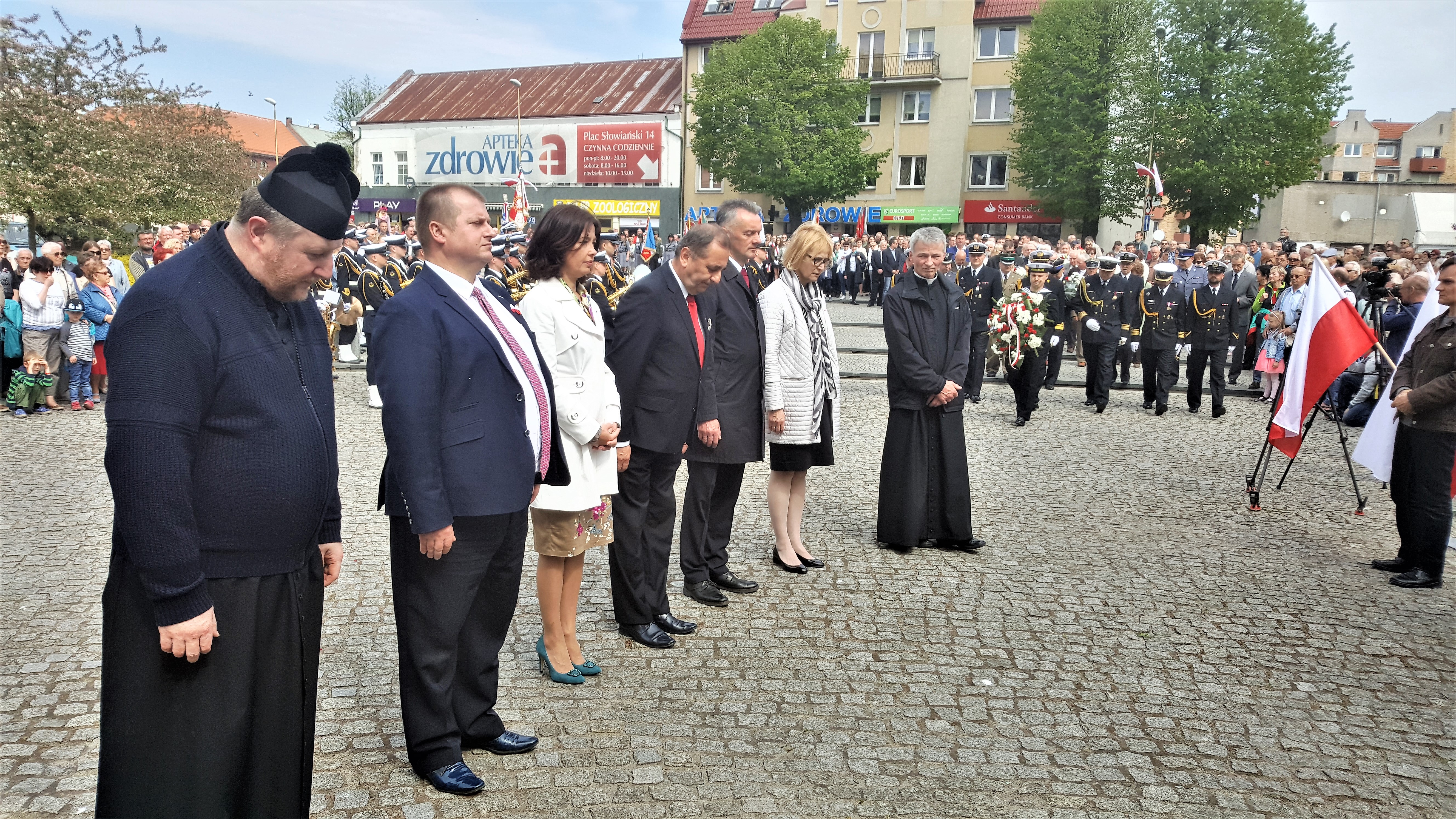 Mszą Świętą Za Ojczyznę oraz Apelem Pamięci i złożeniem wiązanek kwiatów przez przedstawicieli władz samorządowych, delegacje służb mundurowych, instytucji, szkół, organizacji, związków, stowarzyszeń oraz mieszkańców i gości Miasta pod Pomnikiem Bohaterom Walk o Niepodległość Rzeczpospolitej uczczono w naszym mieście Święto Konstytucji 3 Maja.