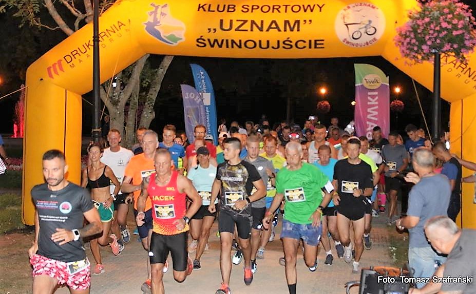 Dokładnie o 21:00 (14 sierpnia 2108), tuż przy parkowych fontannach, wystartowała Nocna 9, bieg zorganizowany przez świnoujskich biegaczy, przy dużym wsparciu lokalnych sponsorów, dla mieszkających i wypoczywających w naszym mieście biegaczy. Limit biegu to 100 miejsc, a więc bieg kameralny. Czas startu to pora zmierzchu, a więc bieg nastrojowy.