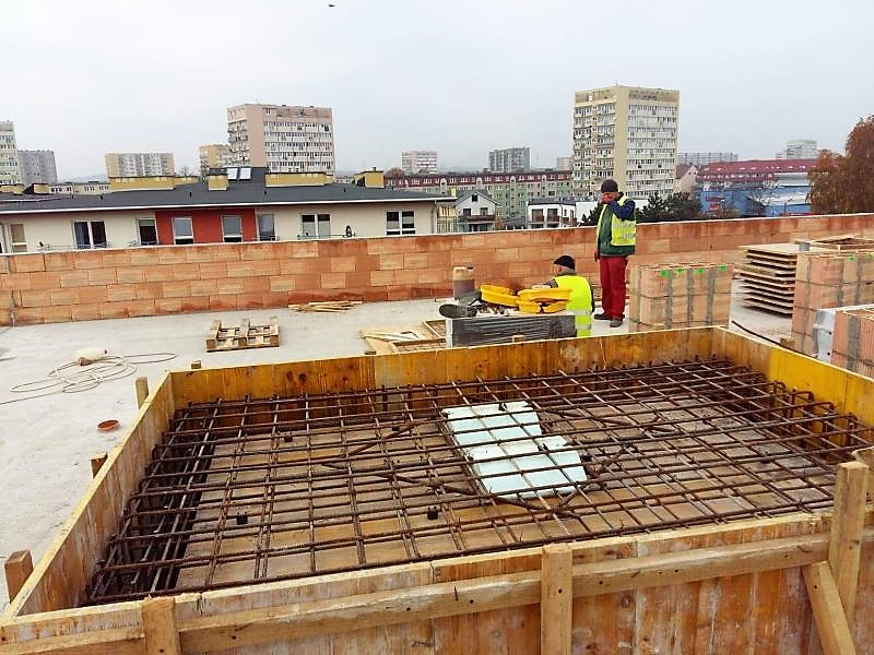 - W tym tygodniu kryjemy dach termoizolacją, a wewnątrz rozpoczynamy wykonanie instalacji sanitarnych i elektrycznych – mówi Radosław Jackun.