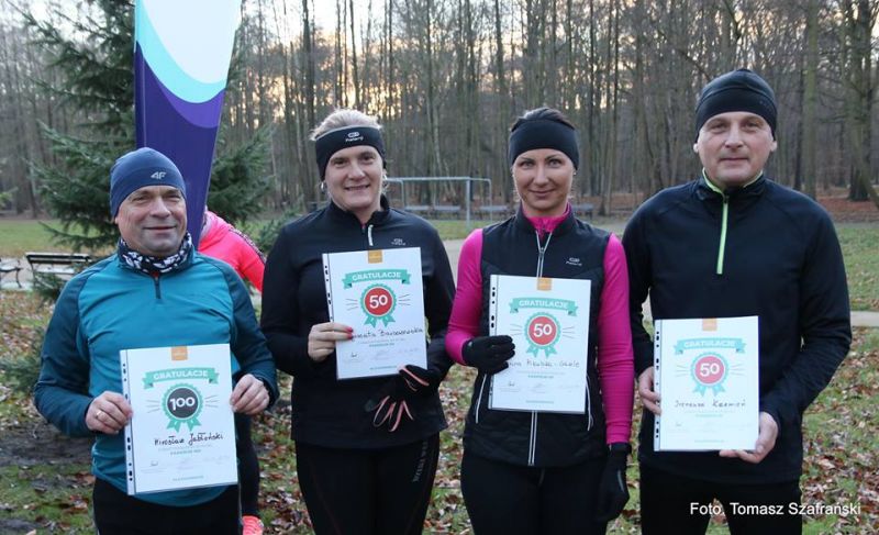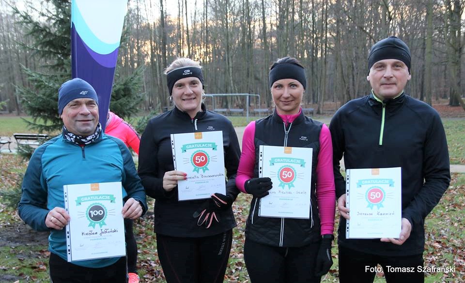 I tak w styczniowy poranek do parku zawitali biegacze – ci mali i ci duzi, kijkarze oraz psiaki: Loyd, Juka i Daster. Po ostatnich wichurach dziś pogoda dopisała biegaczom. Aktywna rozgrzewka w wykonaniu Ani Górskiej jak zwykle świetnie przygotowała wszystkich na truchtanie po parkowych alejkach. Zanim wszyscy wystartowali o godz. 9.00 gromkimi brawami pogratulowaliśmy Mirkowi Jabłońskiemu, który pokonał 100 parkrunów oraz tym, którzy na swoim koncie mają ponad 50. parkrunów, a w tym zacnym gronie znalazła się Małgorzata Barszczewska, Karina Mikulska - Gawle oraz Irek Krzemień - jesteście The Best - Gratulujemy!
