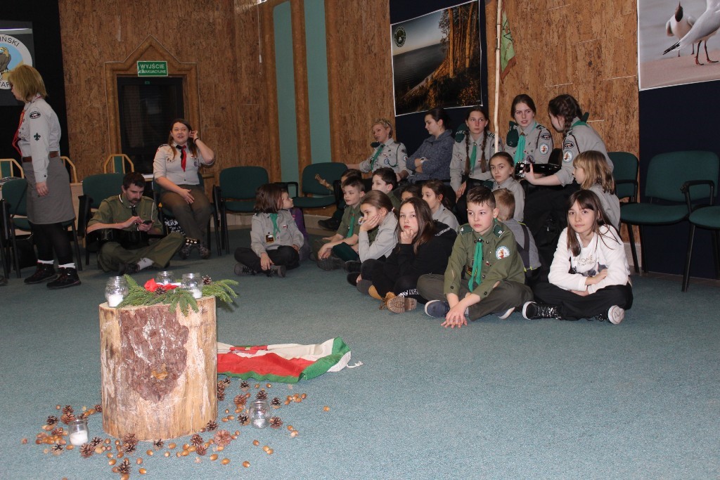 Po turnieju przeszliśmy do Muzeum Wolińskiego Parku Narodowego. Tam w sali konferencyjnej część obrzędowa, czyli świecowisko z okazji Dnia Myśli Braterskiej. Tu dołączyli do nas przedstawiciele władz miasta z Burmistrzem Międzyzdrojów Mateuszem Bobkiem, Zastępcą Burmistrza Beatą Kiryluk oraz Przewodniczącym Rady Miejskiej Janem Węglorzem, Dyrektorem Szkoły Podstawowej nr 1 w Międzyzdrojach Iwoną Banachowicz, zaproszeni goście i nasi seniorzy z Harcerskiego Kręgu Seniora „Kotwica” w Świnoujściu.