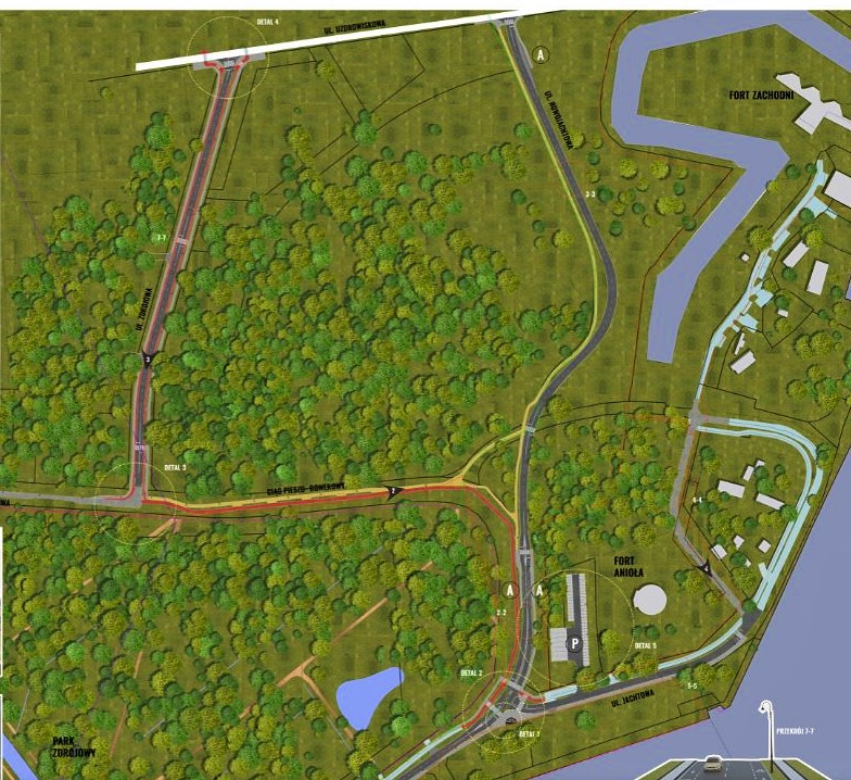 Przebieg nowej ulicy, ścieżki oraz chodnika zaakceptowali radni. Pod koniec lutego część z nich wzięła udział w wizji lokalnej. Przechodząc całą trasę razem z projektantami i inżynierami z urzędu miasta mogli na miejscu zobaczyć, którędy będą przebiegać nowe drogi i jakie drzewa tam rosną. Trwają jeszcze prace nad szczegółami przedstawionej koncepcji, m.in dotyczących rodzaju nawierzchni na ciągach pieszych i ścieżkach rowerowych, czy konkretnego miejsca na parking przy zjeździe z ulicy Jachtowej w Nowojachtową.