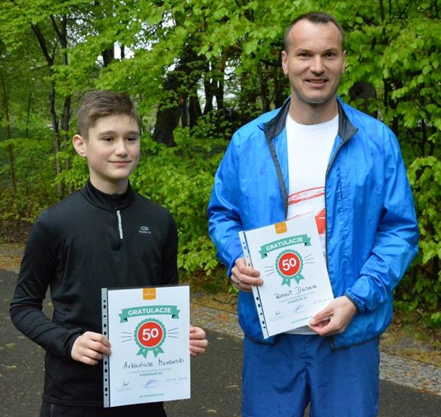 W dniu dzisiejszym na starcie zameldowało się 48 osób z czego 11 to kobiety a 37 to panowie. Dla dwojga naszych parkrunerów – Roberta DUSZY i Arkadiusza MURAWSKIEGO był to szczególny dzień, ponieważ odebrali dyplomy i gratulacje za ukończenie 50 biegów w ramach parkrun. Jeszcze raz gratulujemy.