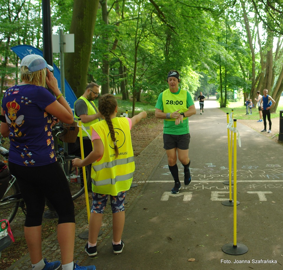 Dzisiaj ta szczególna edycja biegu miała wiele nieoczywistych odsłon – na początek tuż po starcie biegu głównego wystartował Mały parkrunik, w którym to wzięło udział całkiem sporo najmłodszych aktywnych dzieciaczków. Pod czujnym okiem Krówki Agusi bezpiecznie przebyły nieco krótszy dystans. W biegu tym nie mierzyliśmy czasu, bo przecież dzisiaj wszystkie dzieci pierwsze są i każdy otrzymał na mecie ciasteczkowy medal. Potem wszystkie dzieci udały się na polanę, aby dalej uczestniczyć w zabawach, uzupełniały poziom swej słodkości oraz losowały drobne upominki. Następną oczywistą nieoczywistością dzisiejszego parkrunu byli wolontariusze – nieco mniejsi i młodsi niż zazwyczaj i co by tu nie mówić świetnie spisali się w swoich rolach za co im bardzo, ale to bardzo dziękujemy.