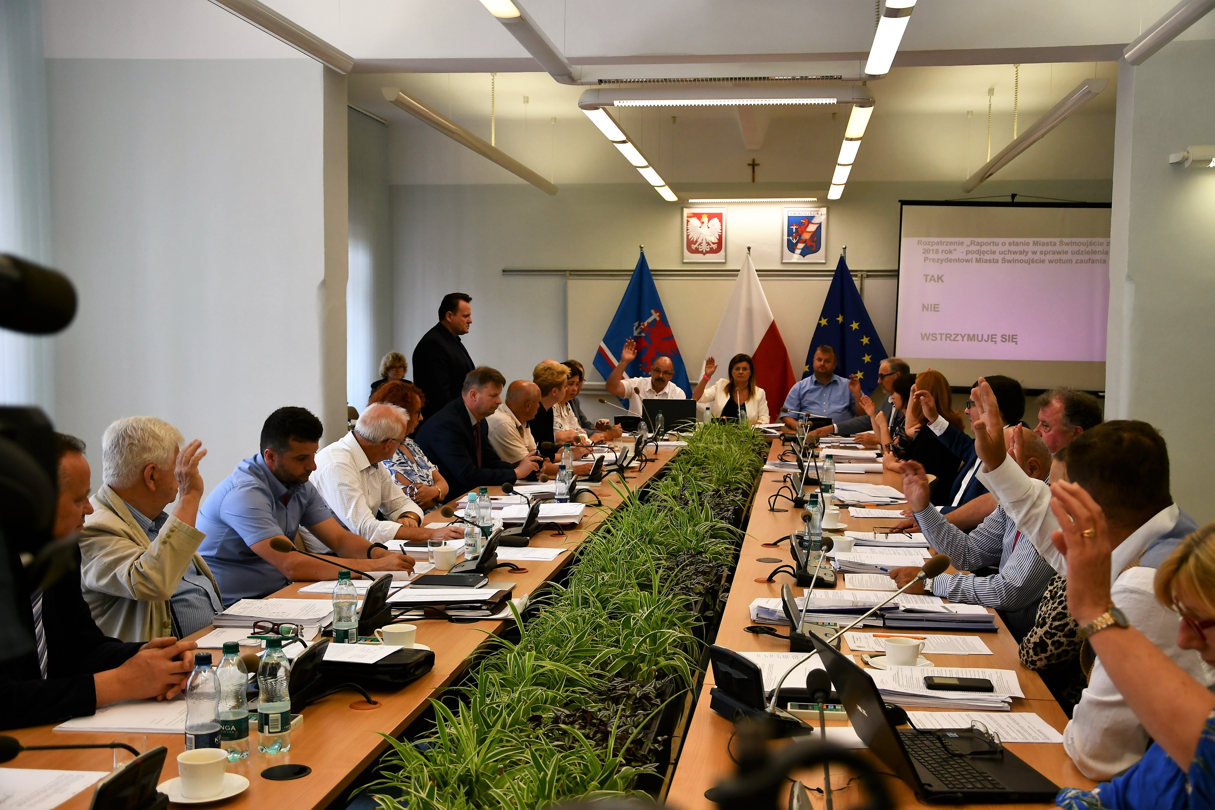 14 radnych na 20 obecnych było za udzieleniem wotum zaufania Prezydentowi Miasta Świnoujście Januszowi Żmurkiewiczowi. Nikt nie był przeciwny, a 6 radnych wstrzymało się od głosu. Wcześniej, zgodnie z ustawą o samorządzie gminnym, prezydent przedstawił radnym „Raport o stanie miasta za 2018 rok”. Dokument jest podsumowaniem działalności organu wykonawczego, jakim jest prezydent miasta, a w szczególności realizację strategii, programów i planów oraz uchwał Rady Miasta Świnoujście i Budżetu Obywatelskiego.