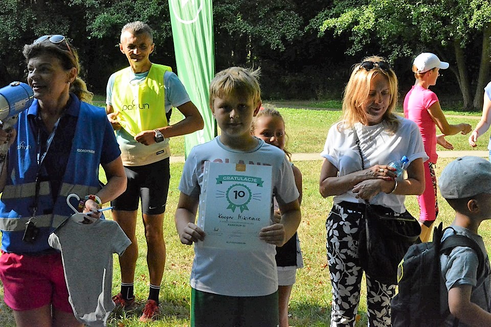 Na parkrunowym spotkaniu znalazł się czas na podsumowania - Jana Gryta otrzymała dyplom za pokonanie 100 parkrunów a w kategorii juniorów Kacper Mikiewicz za 10. Jeszce raz gratulacje.