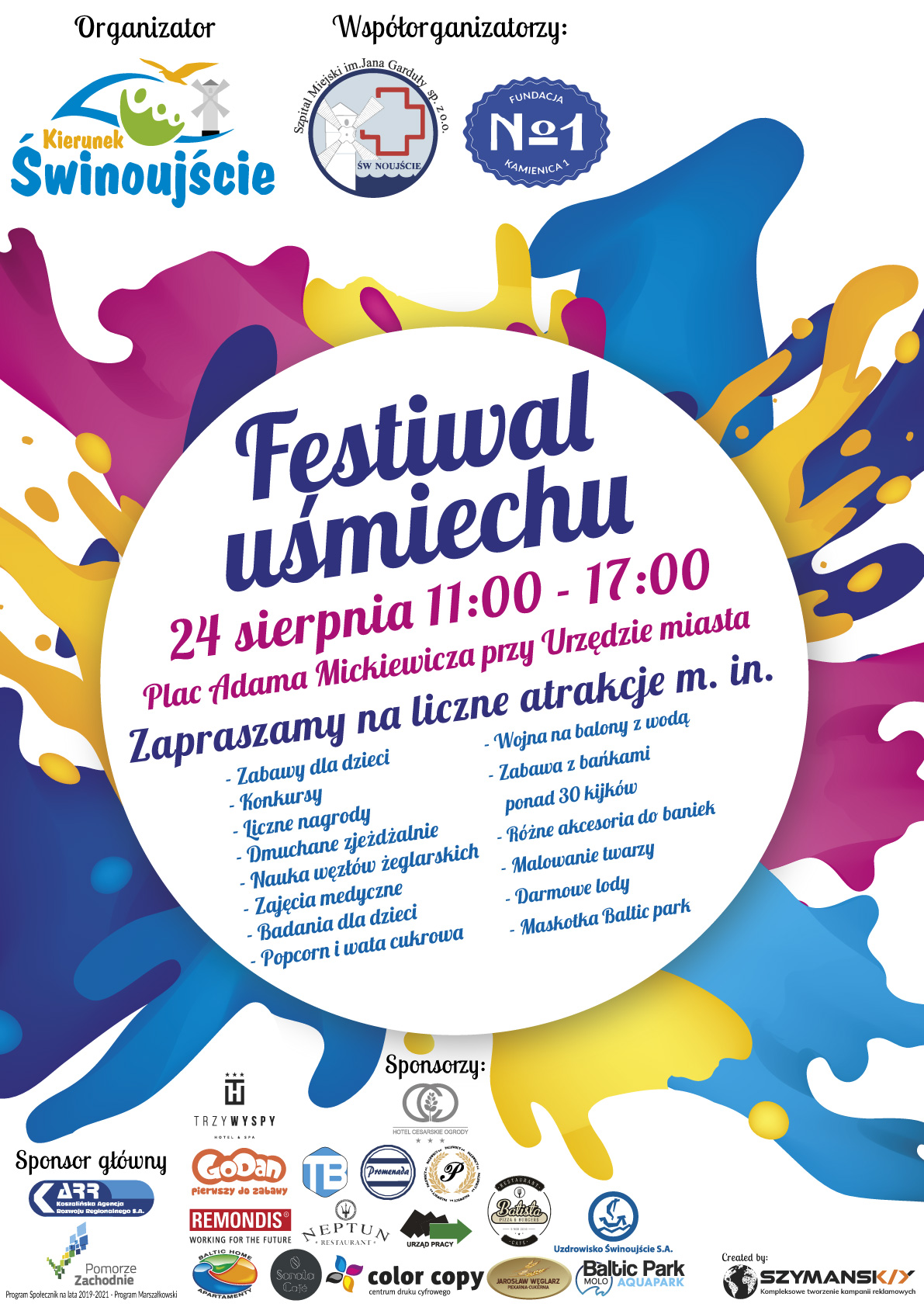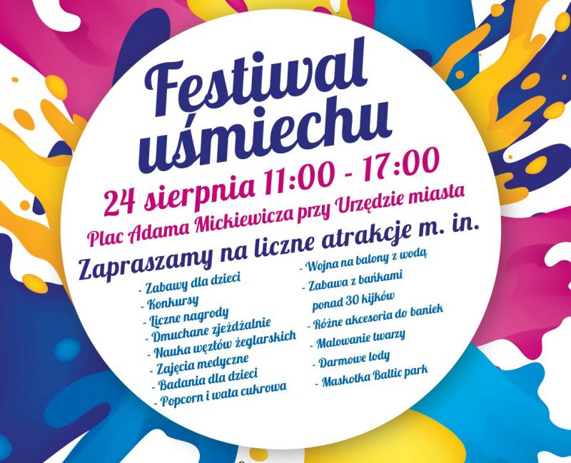 Stowarzyszenie Kierunek Świnoujście ma przyjemność zaprosić Państwa na drugą edycję Festiwalu Uśmiechu dzięki inicjatywie programu Społecznik na lata 2019-2021. Już w najbliższą sobotę (24 sierpnia 2019 r.) na placu Adama Mickiewicza (przy Urzędzie Miasta) między godziną 11:00 a 17:00 na dzieci czekać będzie moc atrakcji!