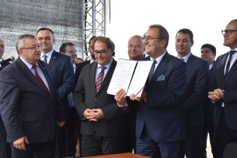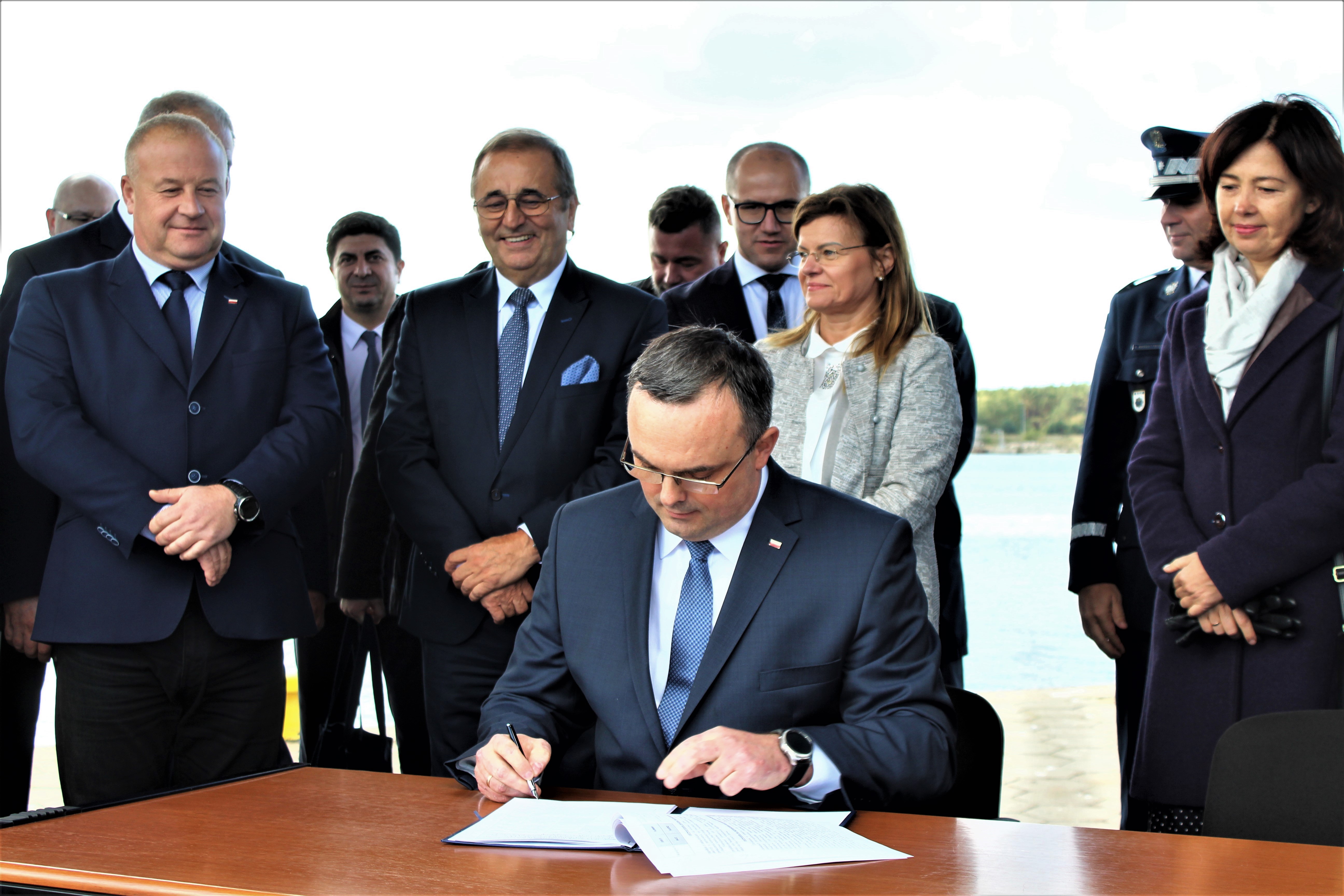 fot. Wojewoda Zachodniopomorski Tomasz Hinc podpisuje decyzję o Zezwoleniu na Realizację Inwestycji Drogowej (ZRID) - budowa tunelu łączącego wyspy Uznam i Wolin w Świnoujściu.