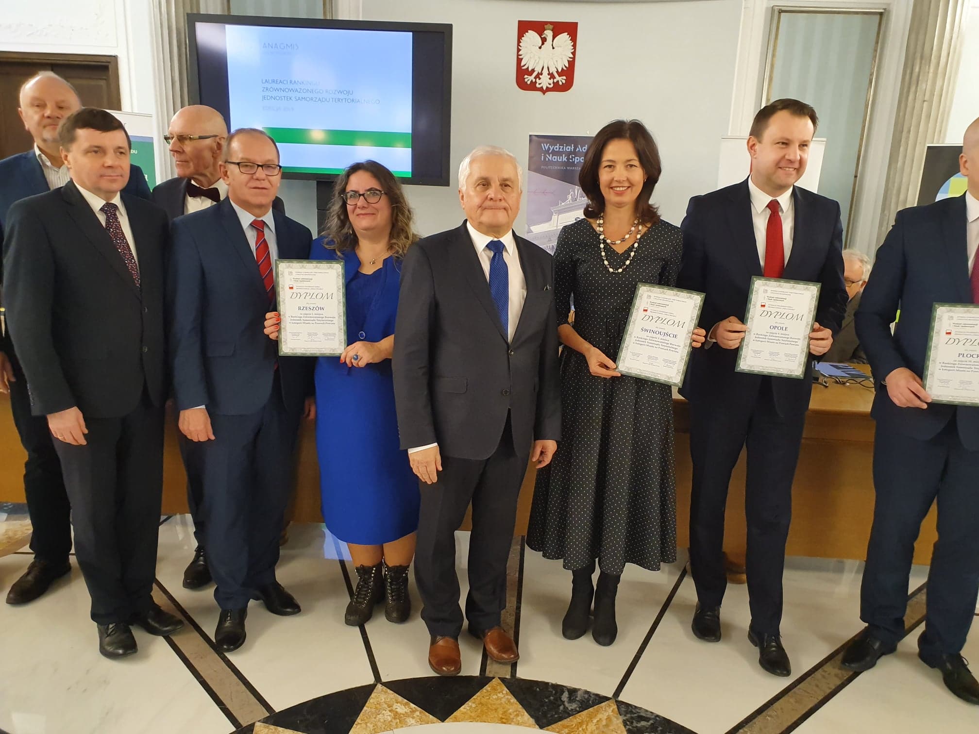 Wyniki dorocznego Rankingu Zrównoważonego Rozwoju Jednostek Samorządu Terytorialnego ogłoszono wczoraj w Sali Kolumnowej Sejmu RP. Świnoujście reprezentowała Zastępca Prezydenta Miasta Barbara Michalska (na zdjęciu pierwsza kobieta od prawej).