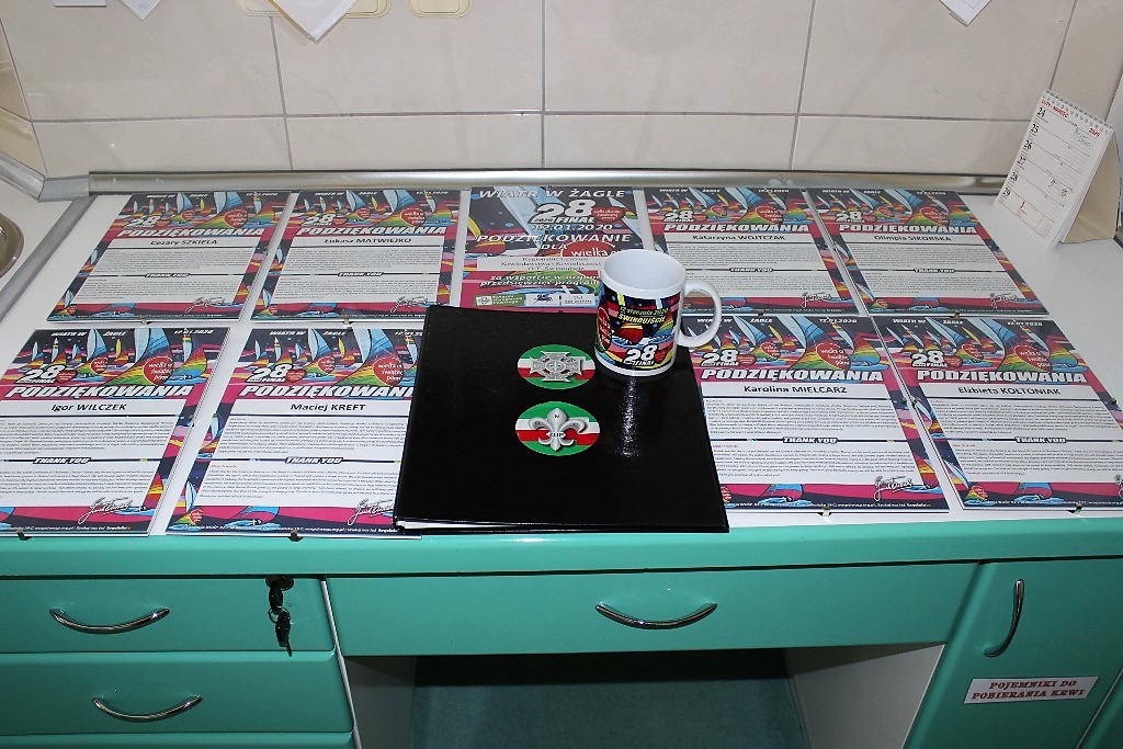 W miniony wtorek w świnoujskim Oddziale Terenowym RCKiK już po raz dziewiąty odbyło się uroczyste podsumowanie akcji Kropla Krwi dla WOŚP, organizowanej przez Harcerski Klub HDK Kropla Życia. W podsumowaniu udział wzięli: zastępca prezydenta miasta pan Paweł Sujka, szef sztabu 28 Finału WOŚP Mirek Nieśpelski, pani doktor Lidia Kujawa z personelem medycznym i zaproszeni krwiodawcy.