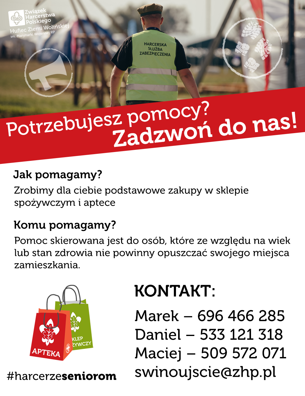 Nieść chętną pomoc bliźnim - pod takim właśnie hasłem, będącym częścią Przyrzeczenia Harcerskiego, wolontariusze z Hufca Ziemi Wolińskiej ZHP wspierają świnoujskich seniorów. Naszą akcję rozpoczęliśmy w dniu 19 marca br. czyli w czasie kiedy koronawirus zaczął się w naszym kraju intensywnie rozprzestrzeniać. Od tego czasu do dziś pomocy udzieliliśmy już 100 razy – dzisiaj właśnie pękła ta jubileuszowa setka.