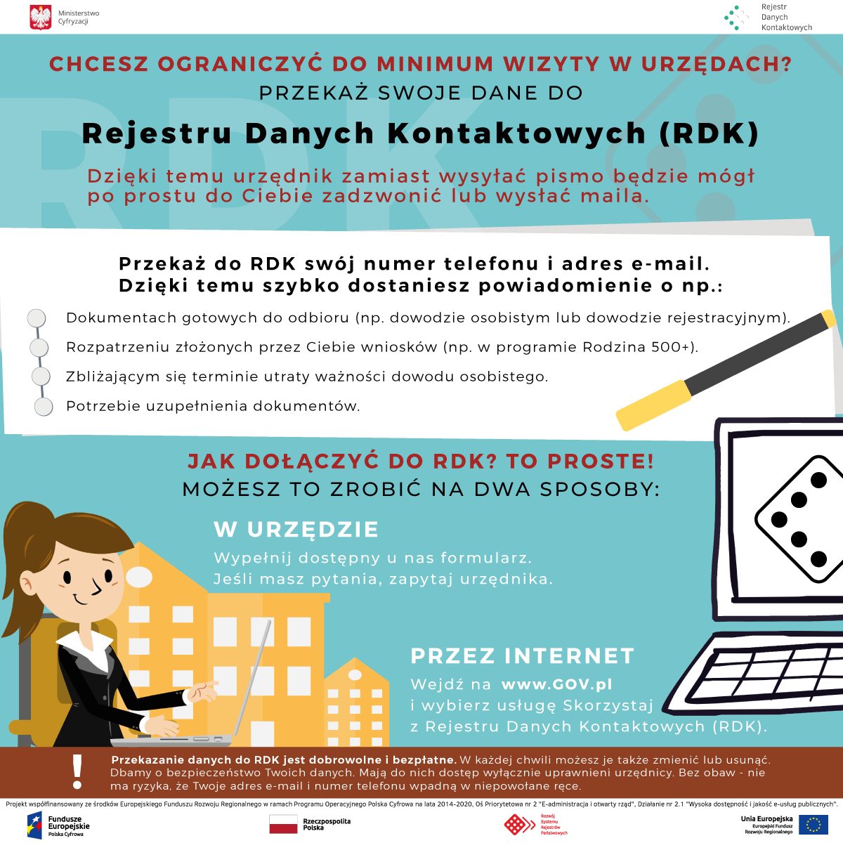 W grudniu 2019 r. Ministerstwo Cyfryzacji, w ramach projektu Rozwój Systemu Rejestrów Państwowych (RSRP), uruchomiło Rejestr Danych Kontaktowych (RDK), który jest kolejnym z rejestrów wchodzących w skład Systemu Rejestrów Państwowych (SRP). Do tej pory, do RDK dołączyło ponad 3 500 000 Polaków. Przekazanie danych do RDK jest dobrowolne i bezpłatne. Ponadto, w każdej chwili można je zmienić lub usunąć.