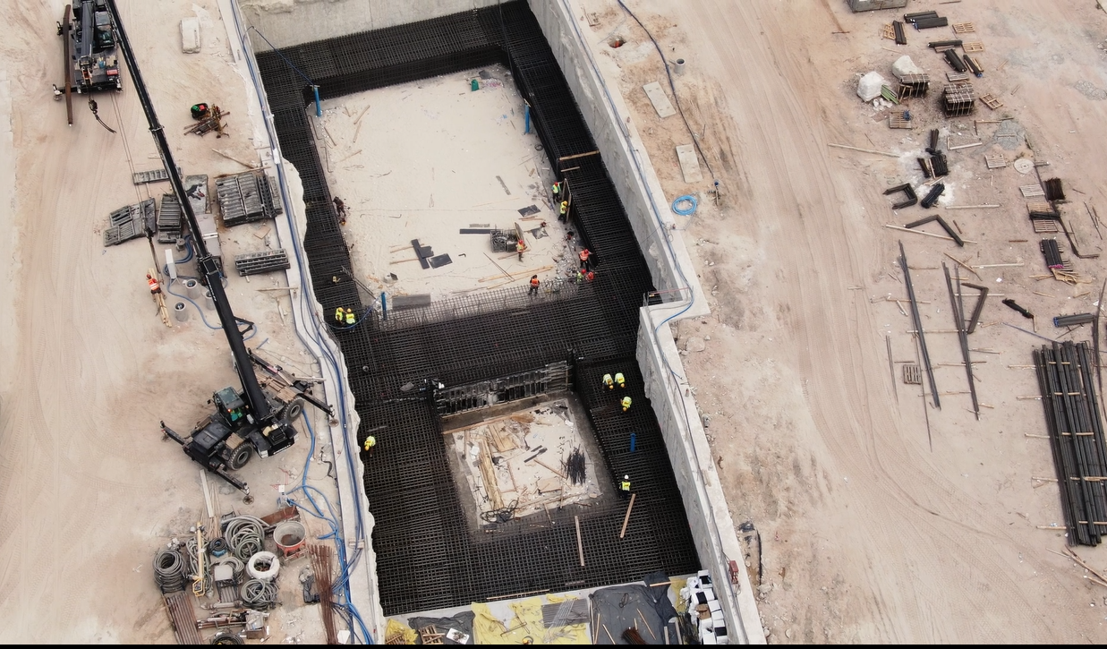 Co jeszcze w ostatnich tygodniach działo się na placu budowy? Trwają roboty konstrukcyjne przy wykonywaniu segmentów 8 i 9. Wykonano zbrojenie, szalunki i zabetonowano ściany oporowe na płycie stropowej. Wykonano izolację płyty i ścian oraz zasypkę stropu.