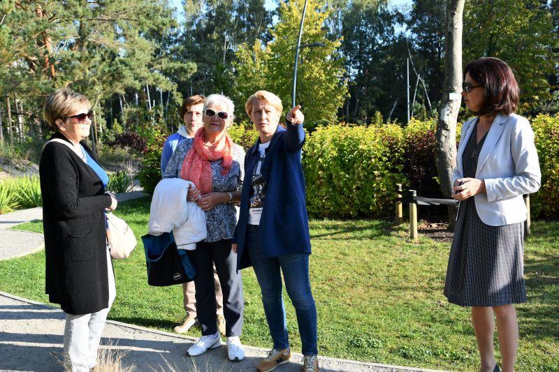 Na zdjęciu Sylwia Jurzyk-Nordlöw, pełnomocnik prezydenta Świnoujścia ds. środowiska opowiada o tajemnicach Ogrodu Sensorycznego.