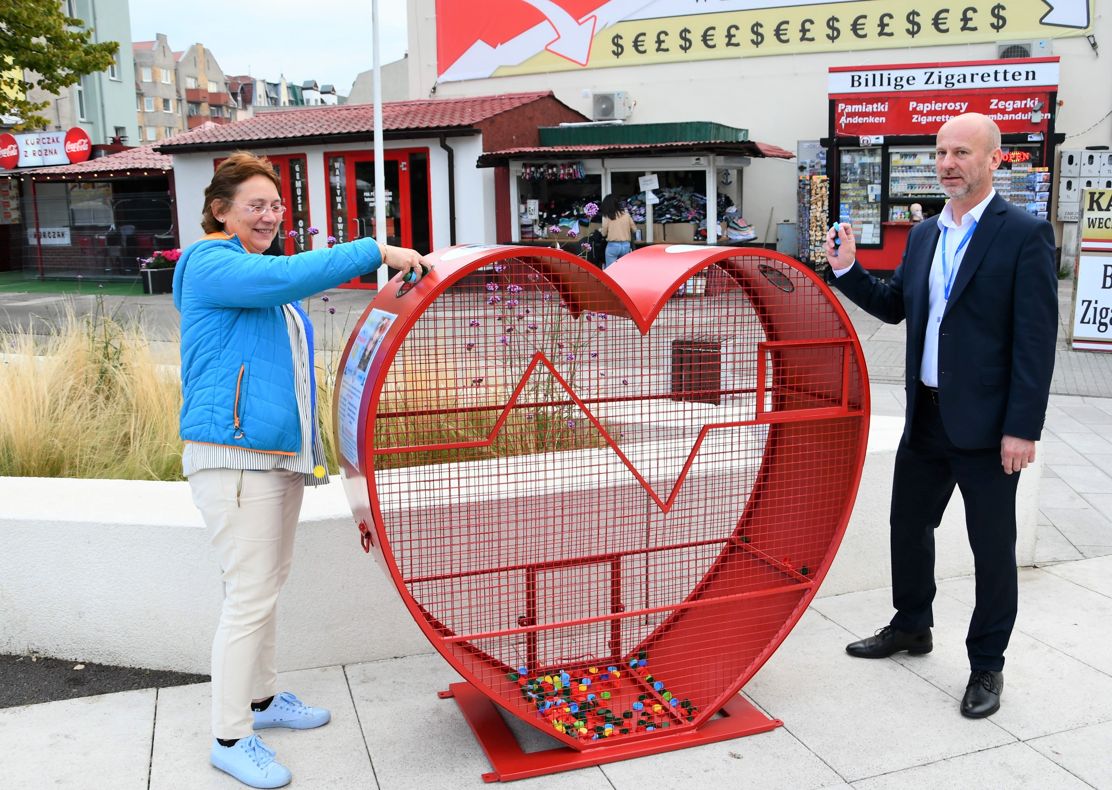 W porozumieniu ze świnoujskim samorządem, na pl. Wolności stanął dziś wielki kosz na nakrętki w kształcie serca. W akcję zaangażowane jest stowarzyszenie Kierunek Świnoujście, inicjatywa Pogoń Plastik! oraz Urząd Miasta Świnoujście.