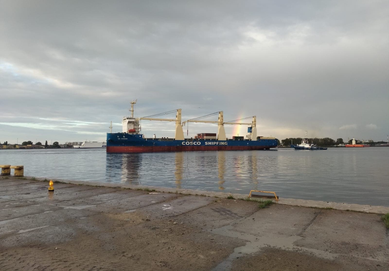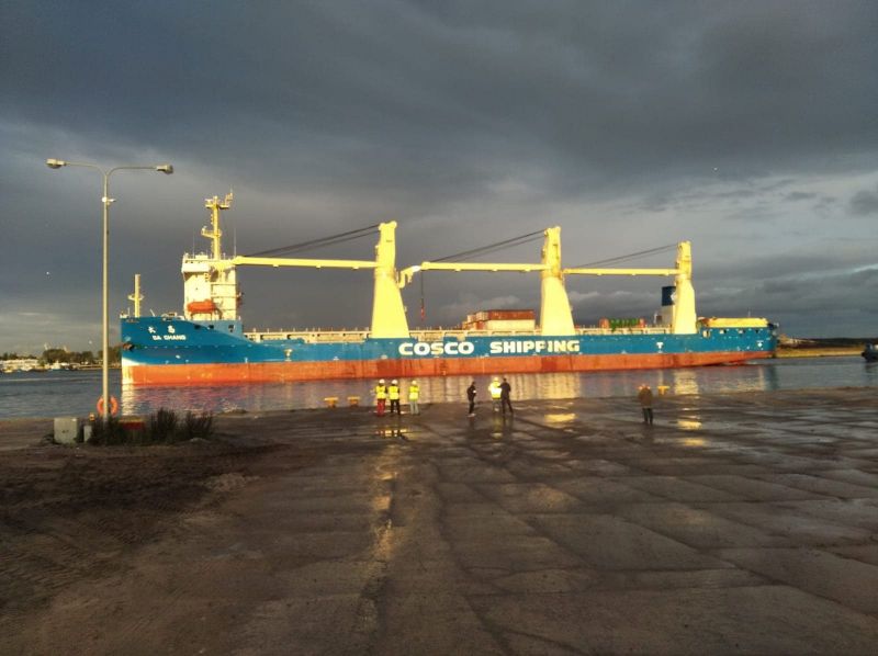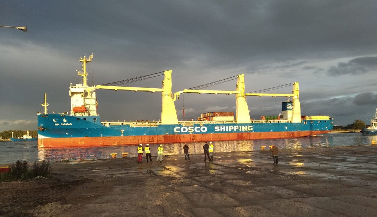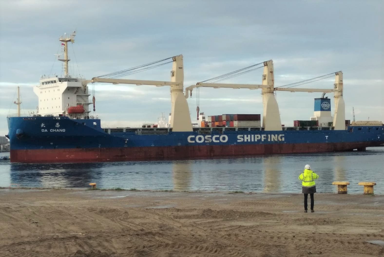 Na zdjęciach statek z TBM przybija do nabrzeża 87.