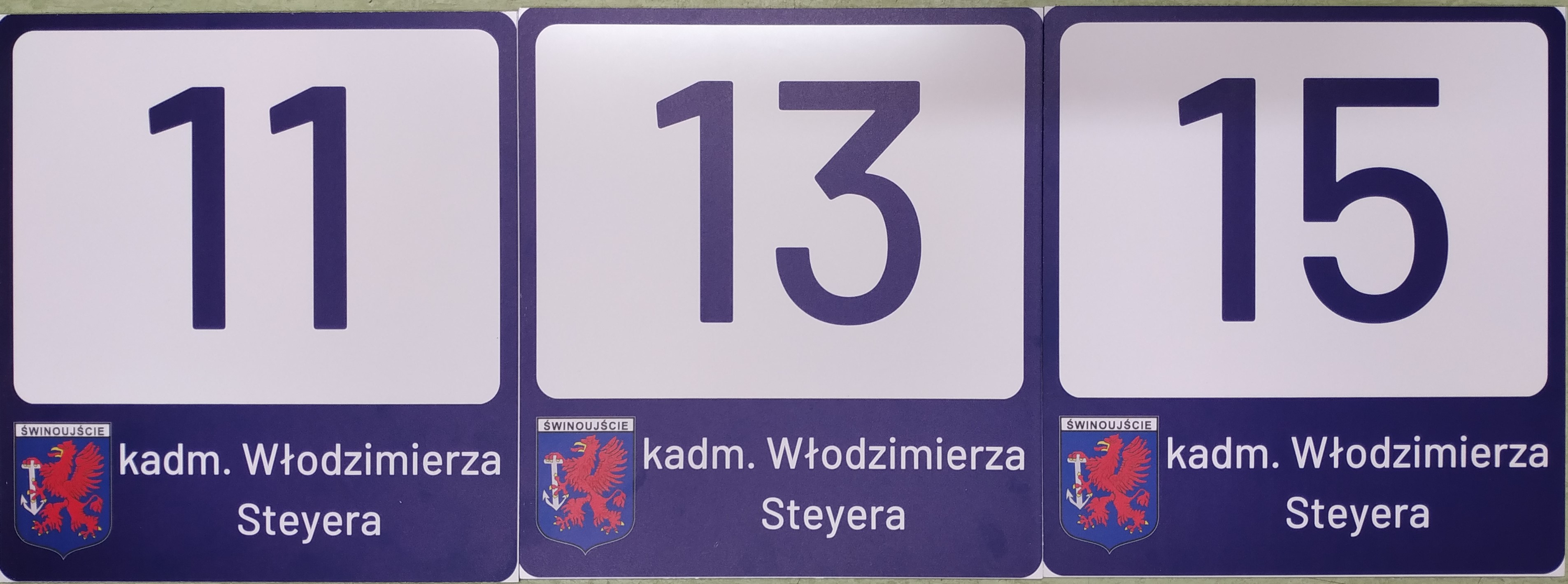 Pierwsze, nowe tablice adresowe pojawiły się na elewacji budynków przy ulicy Steyera. Docelowo, takie ujednolicone tablice z numerem, herbem miasta i nazwą ulicy mają zastąpić istniejącą numerację na świnoujskich budynkach. Miasto zachęca także właścicieli i zarządców nieruchomości do wymiany dotychczasowych oznaczeń na te według nowego wzoru.