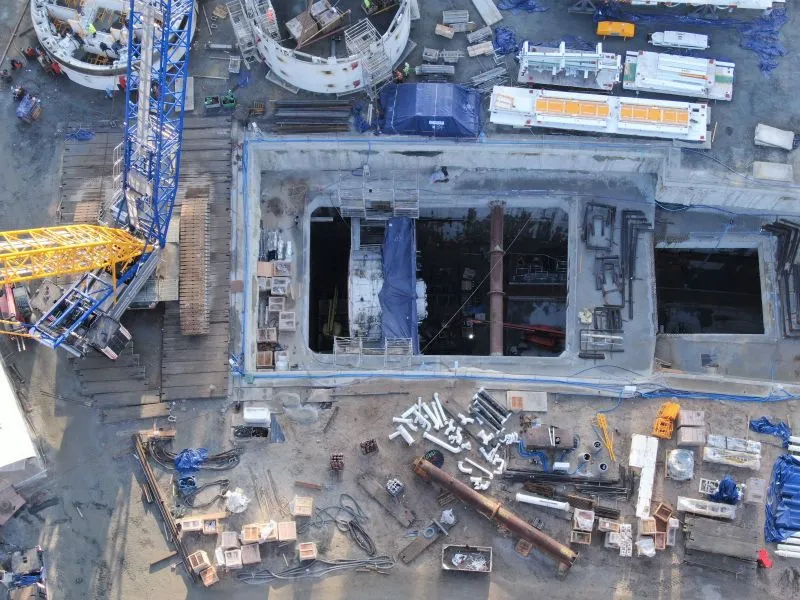 Kontynuowany jest montaż zakładu STP (Slurry Treatment Plant), gdzie płuczka wiertnicza (użyta w trakcie drążenia tunelu) będzie oczyszczana i oddzielana od urobku. Obecnie trwa budowa oświetlenia terenu zakładu STP.